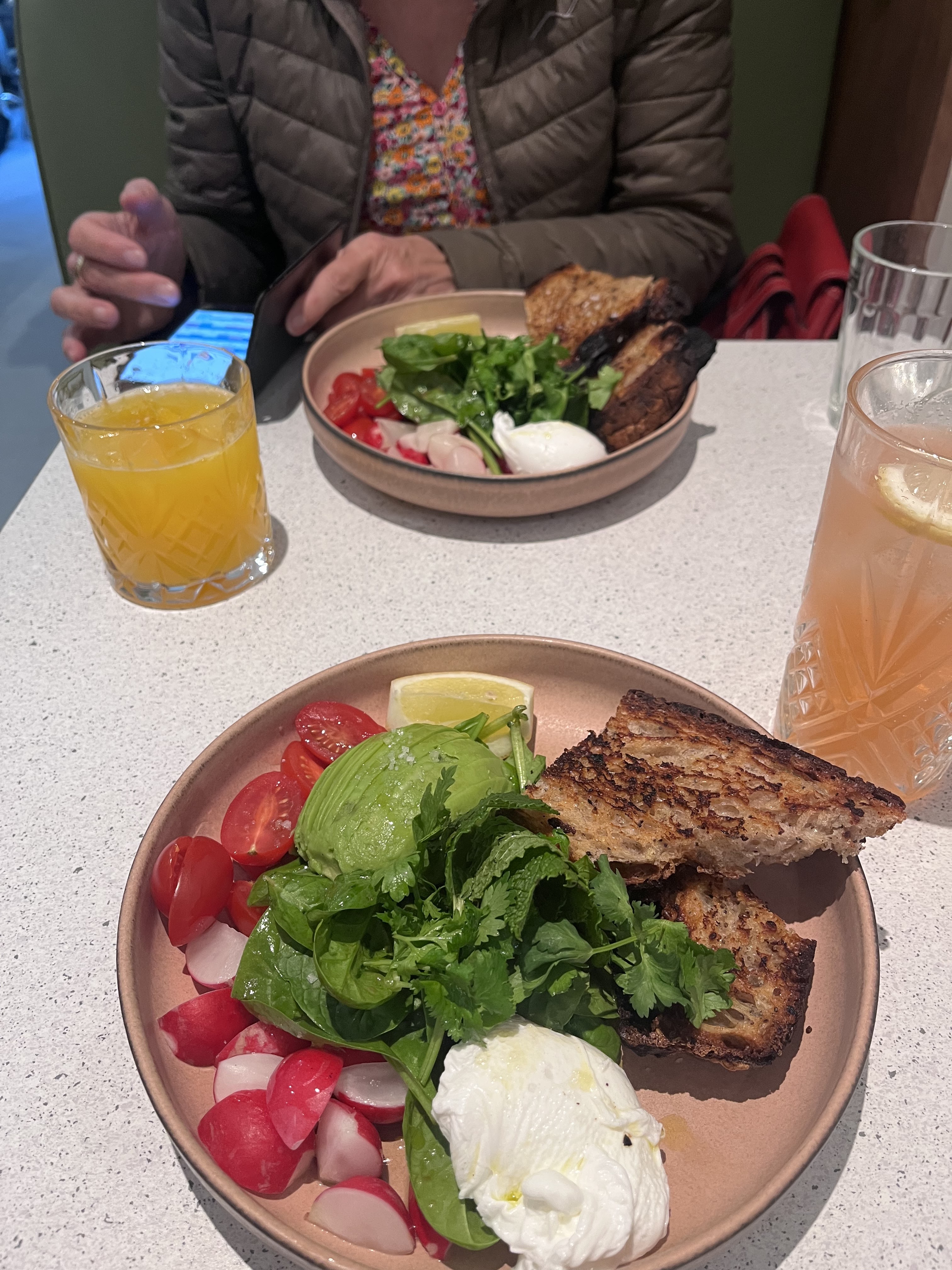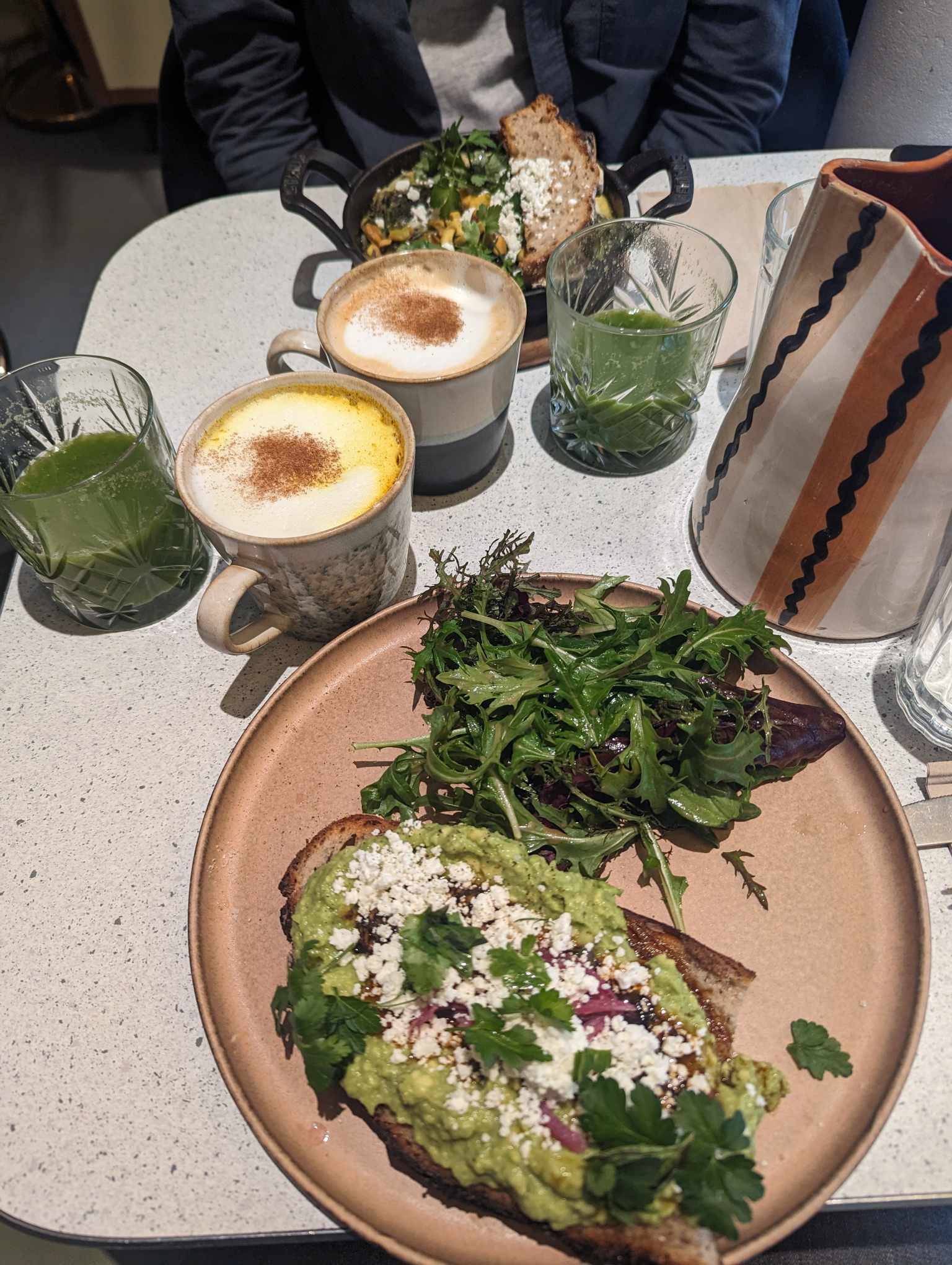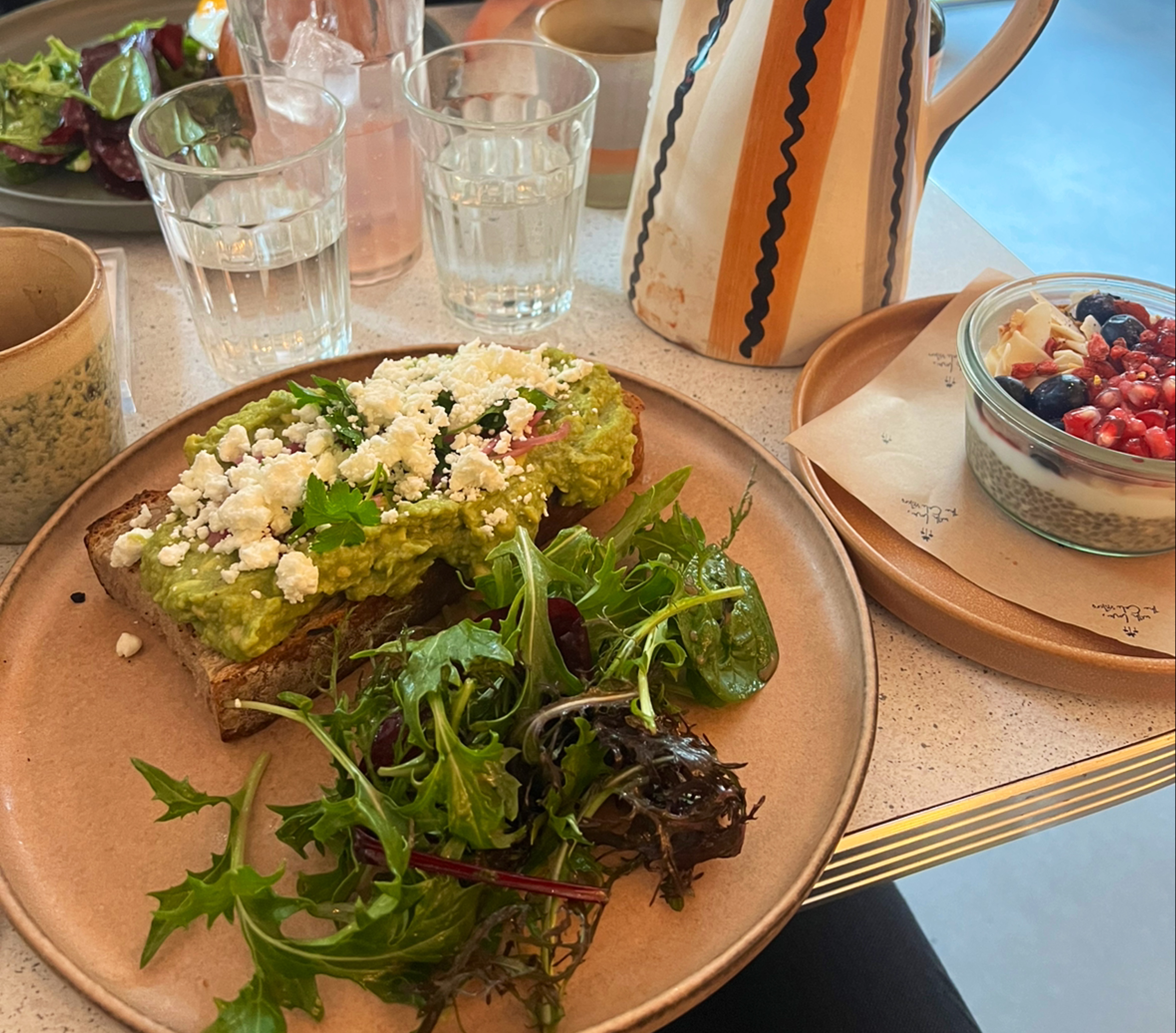 Côté qualité de la nourriture on est sur un brunch à 39 euros qui en vaut 25 a tout casser. C'est cher. C'est pas vraiment bon. Pas vraiment healthy. Mais surtout le service est détestable. Ça vous dérange pas je vais tout vous mettre en une fois que la table, ça m'arrange. Et mais ça m'arrange de ne pas laisser le pourboire du coup. Désolé. Ceci dit la déco est chouette.