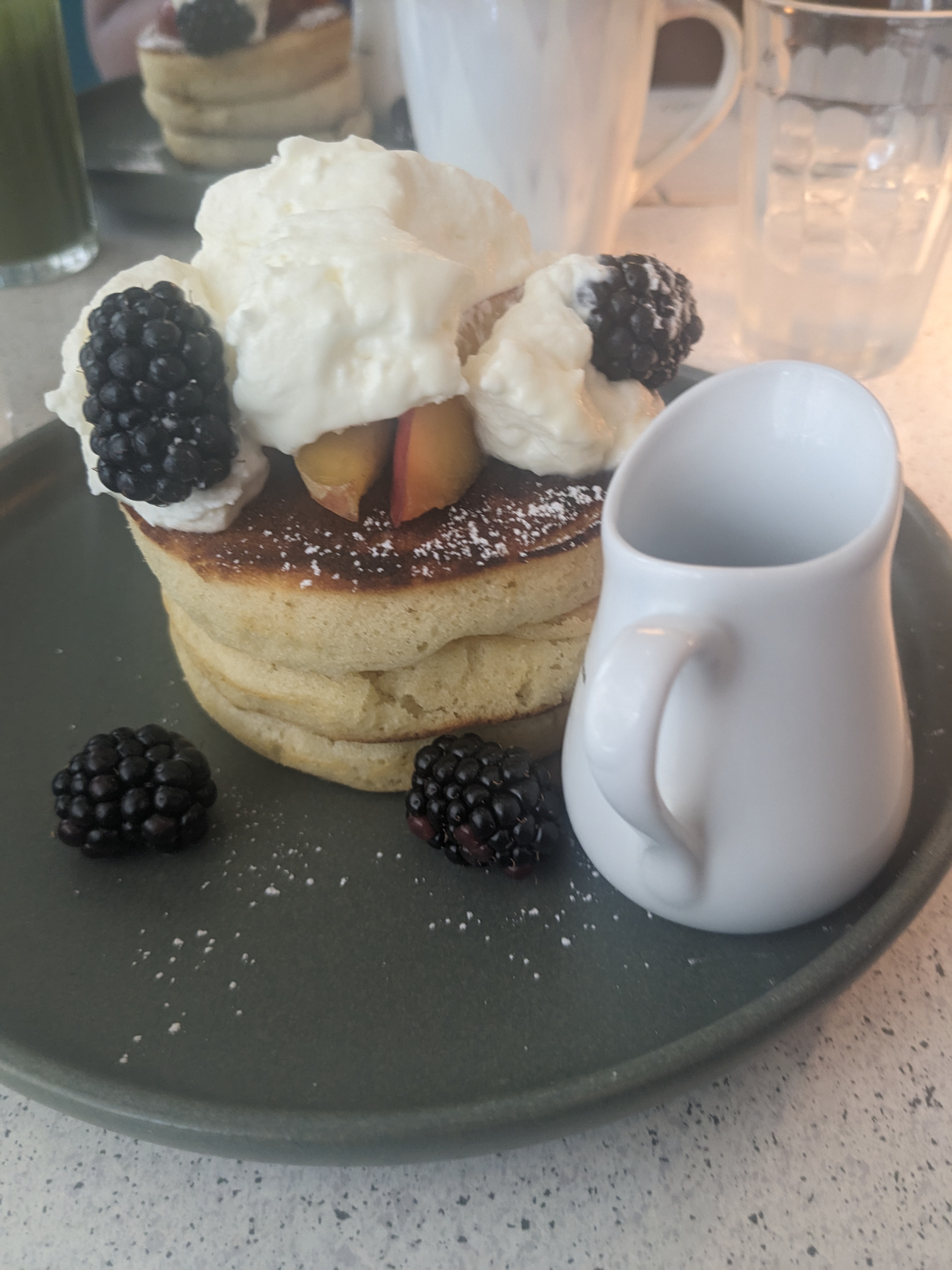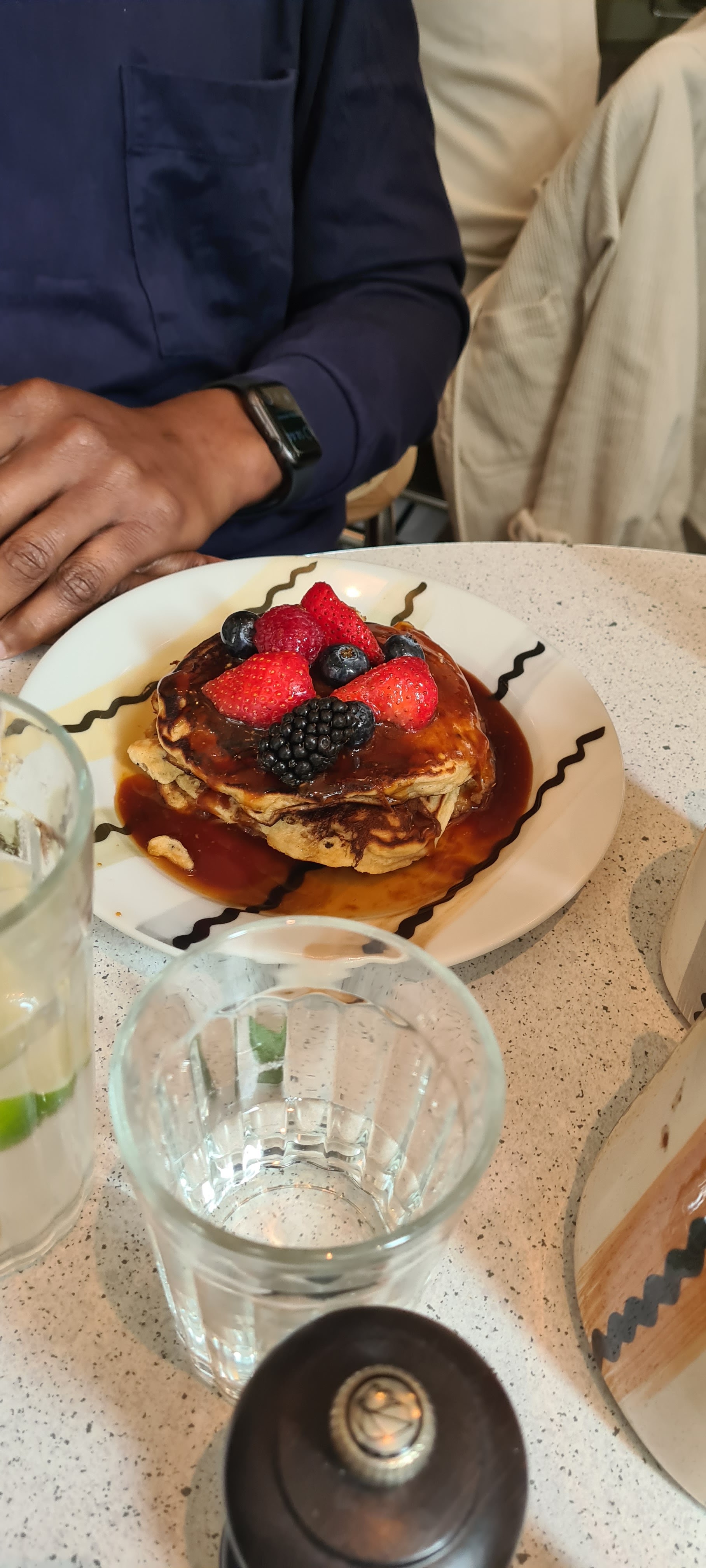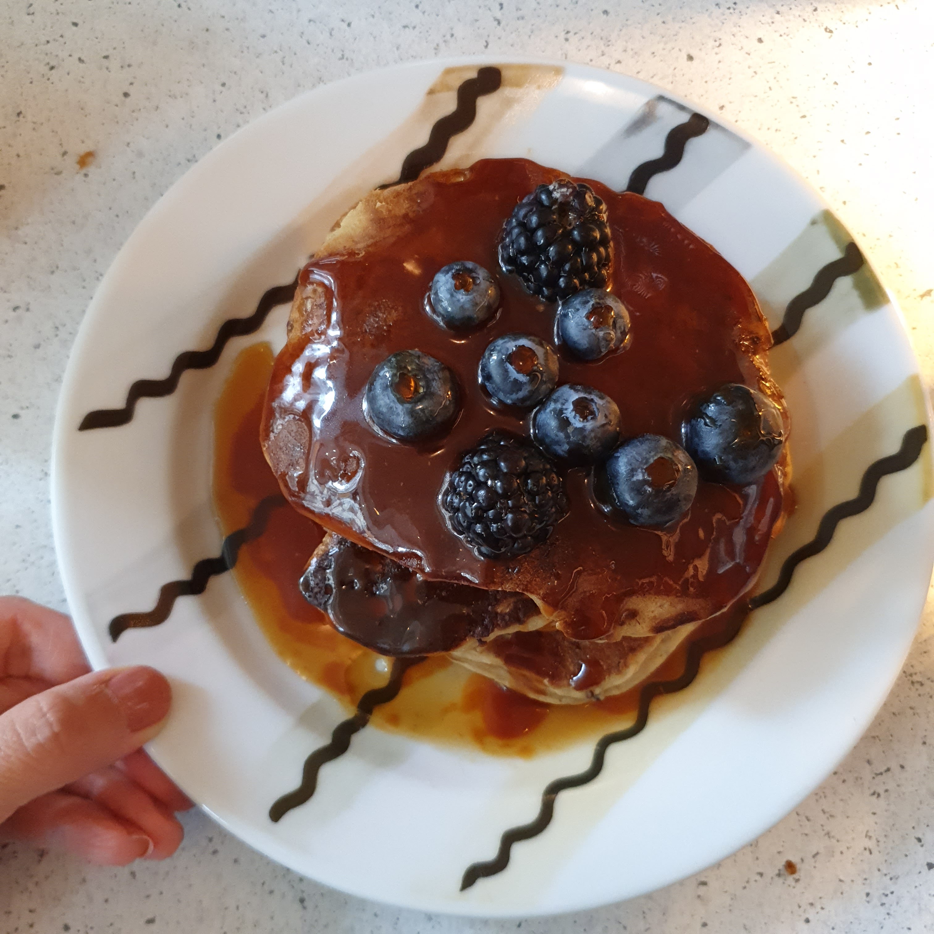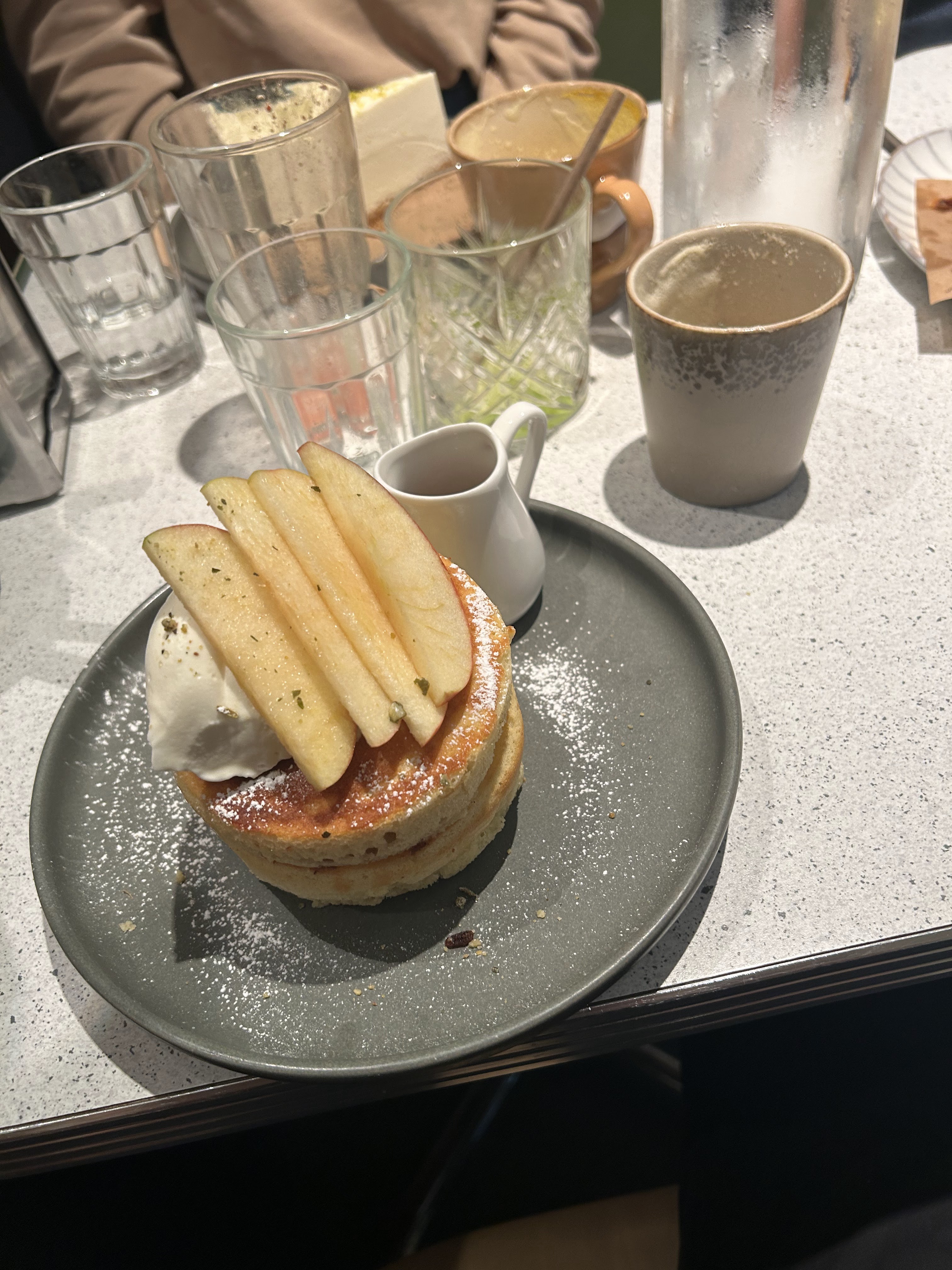 Service rapide. Le Perfect Egg est très bon avec le pain croustillant. Les pancakes sont un peu compacts mais j'aime beaucoup la source au caramel. Comme ils ont un service rapide, ils nous ont demandé de payer en scannant le code QR et créant un compte. On ne voulait pas le faire et on a attendu 3-5 minutes pour payer.