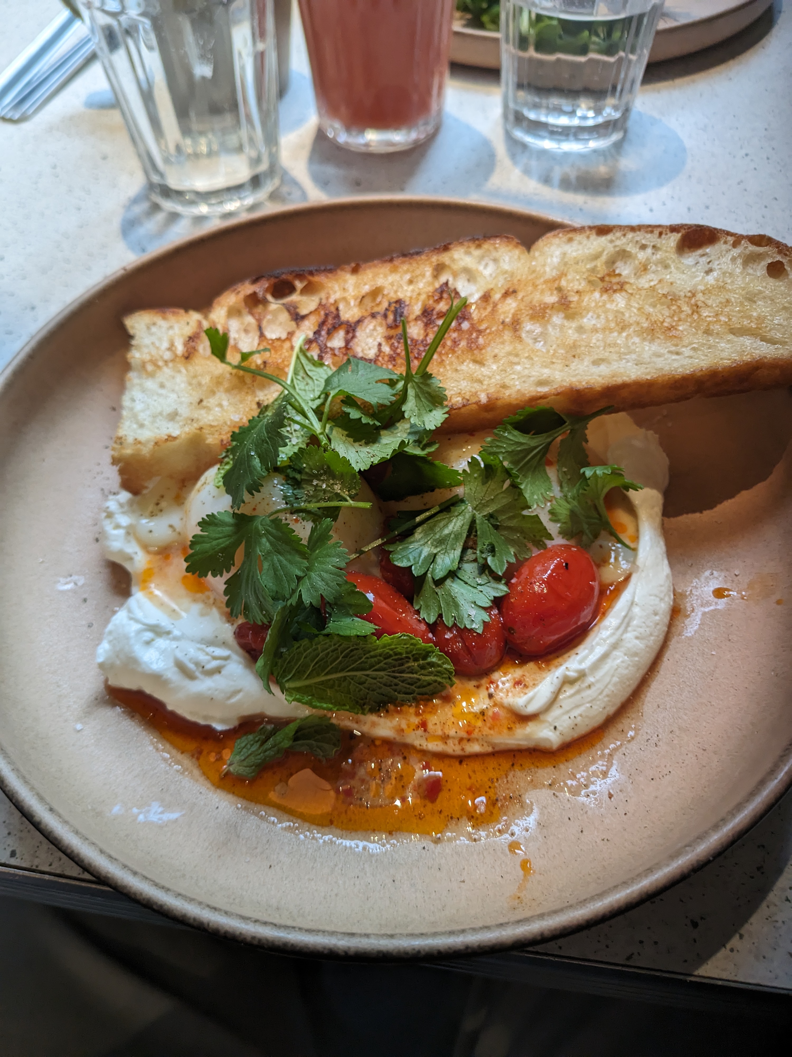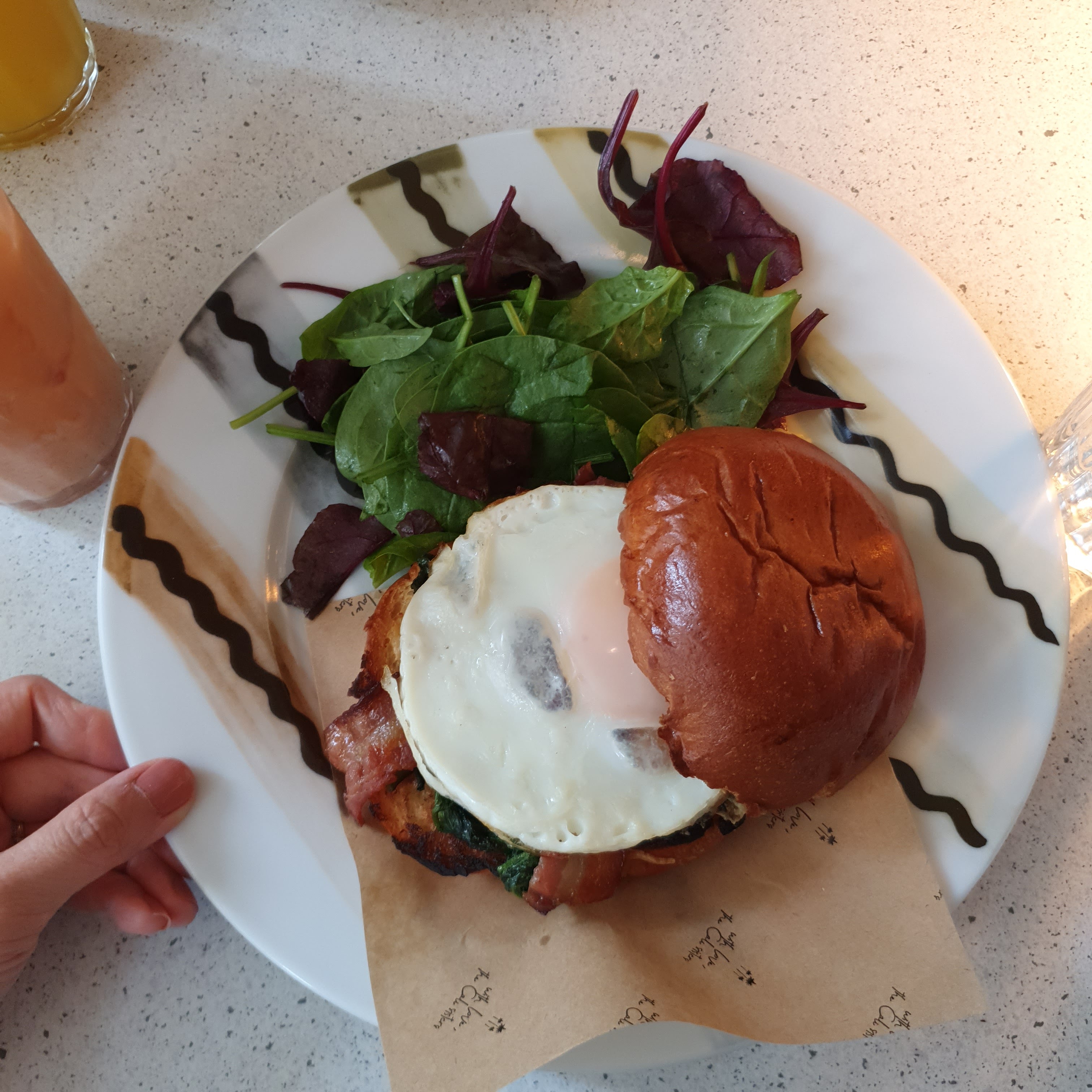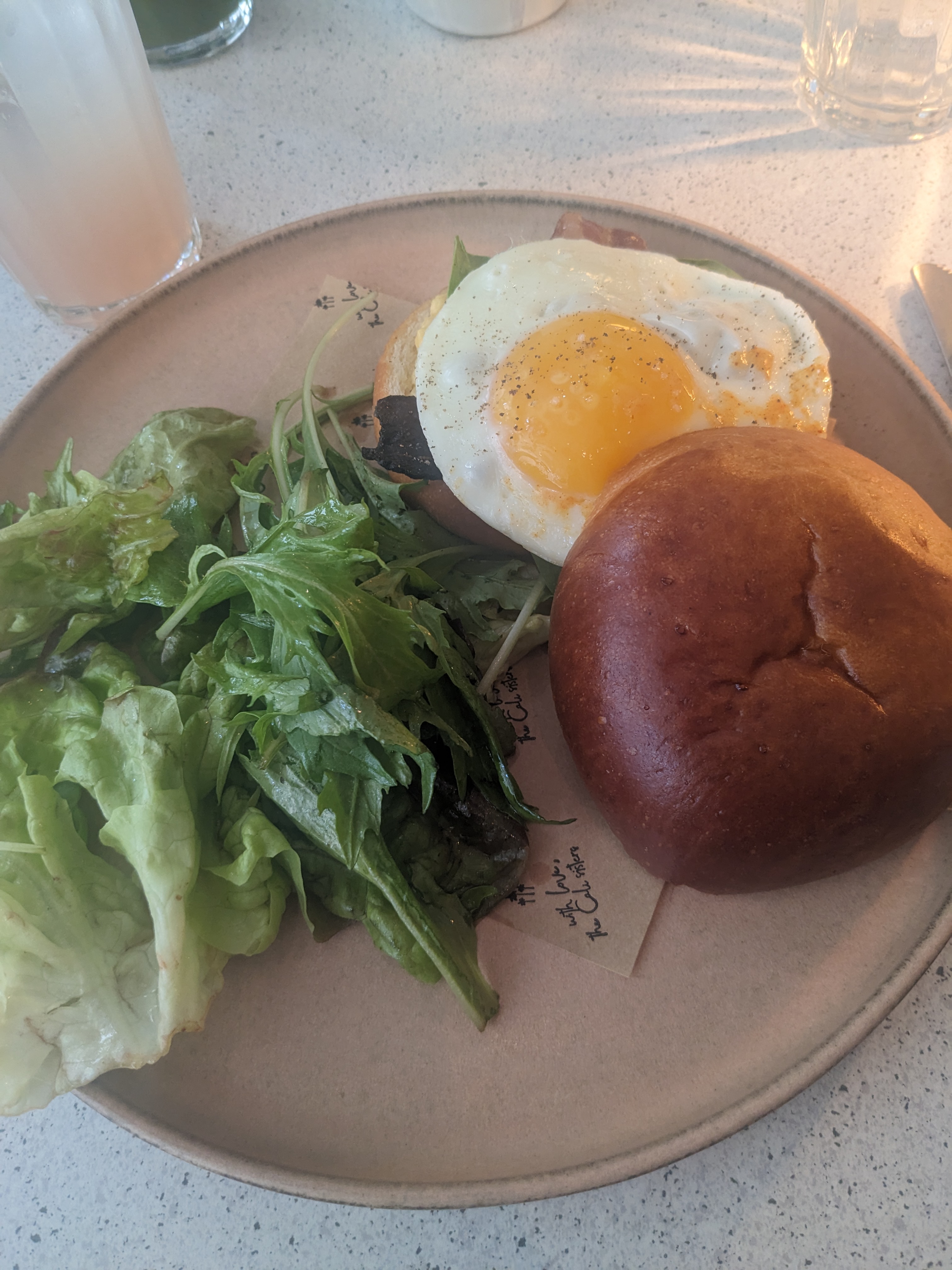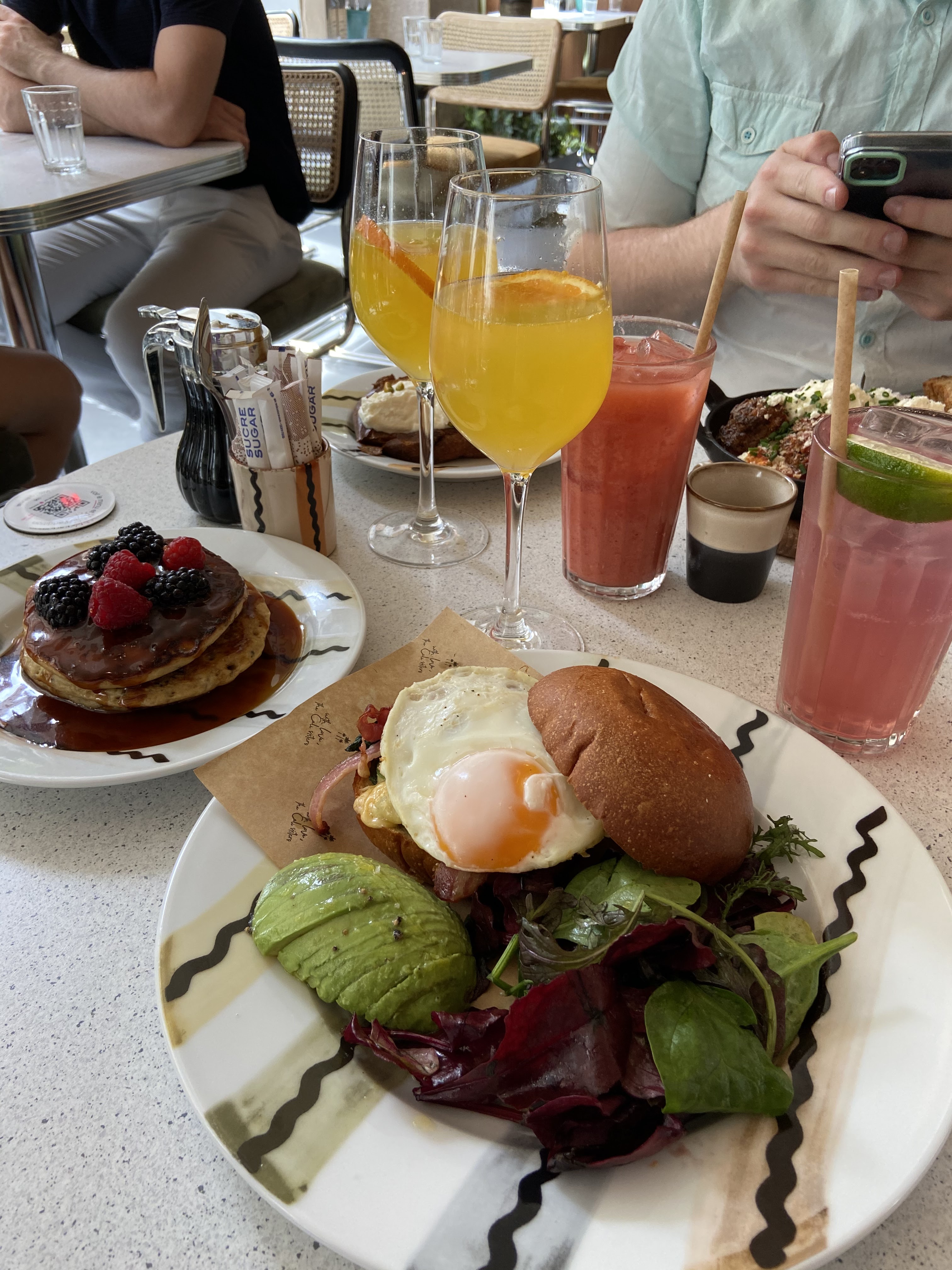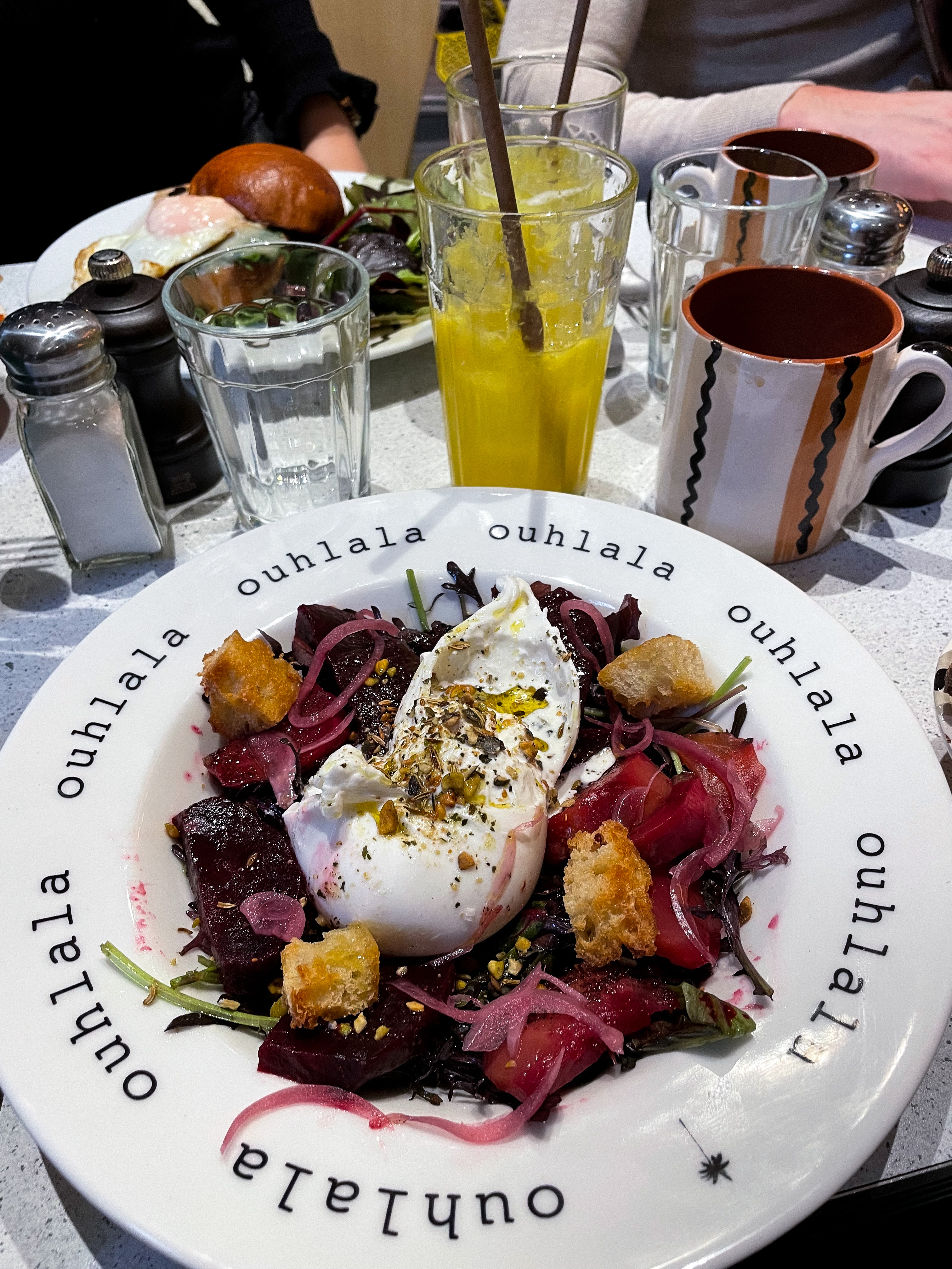 Assez déçu, je ne sais pas pour les brunchs mais j’y suis allé un midi, j’ai pris une salade avec 1 demie burrata minuscule qui est censée être la star de l’assiette 3 feuilles de roquette 1 asperge et 4-5 morceaux de betterave par ci par là, trop vinaigrée et surtout pas rincée j’ai eu le plaisir de déguster du sable tout au long du repas… peut être une référence à la Californie qui est le thème du restau je ne sais pas … j’ai demandé une corbeille de pain pour tenter de faire passer la faim mais elle n’est jamais arrivée, le tout pour 18€ 🙃. Je comme le sentiment d’avoir été pris pour âne …