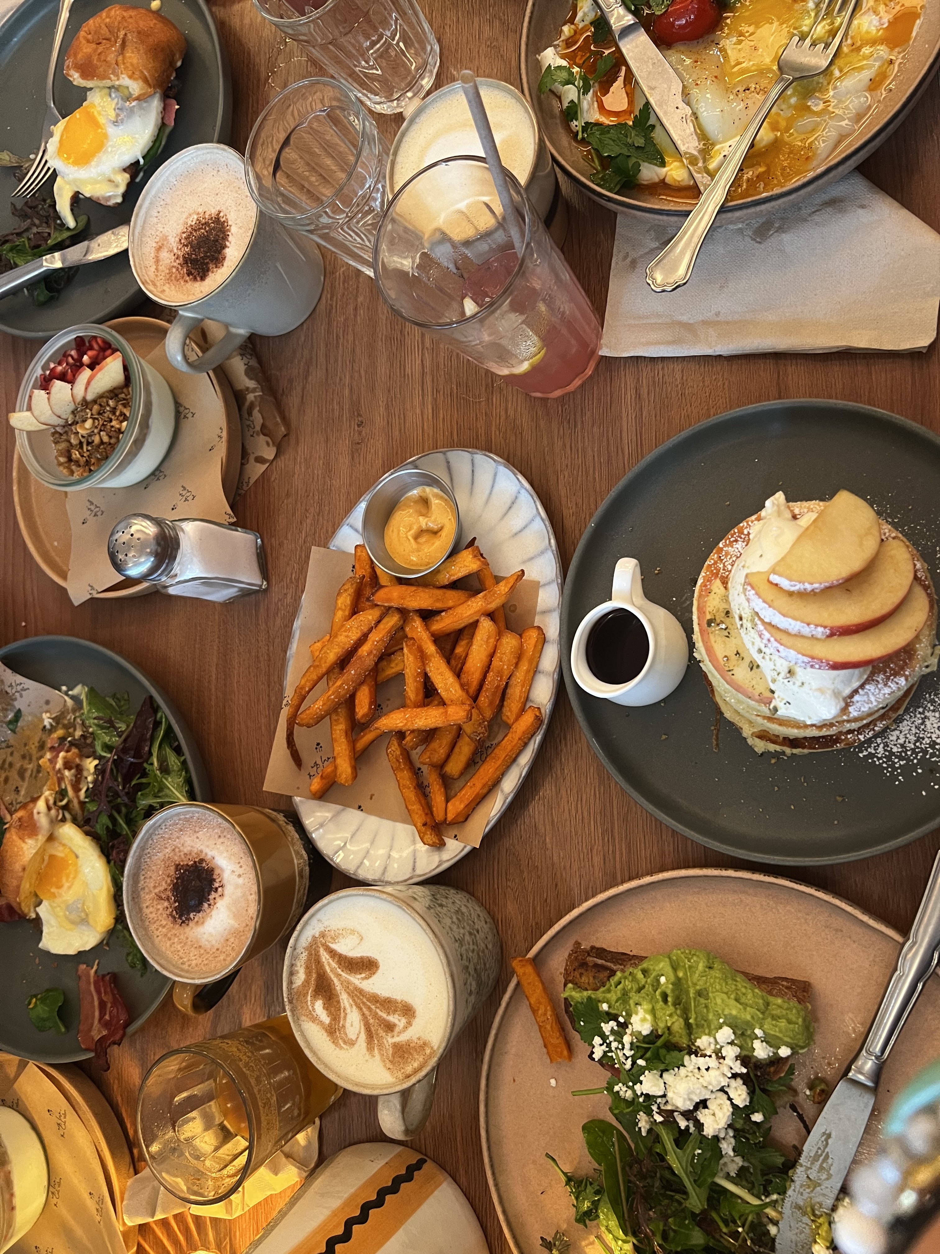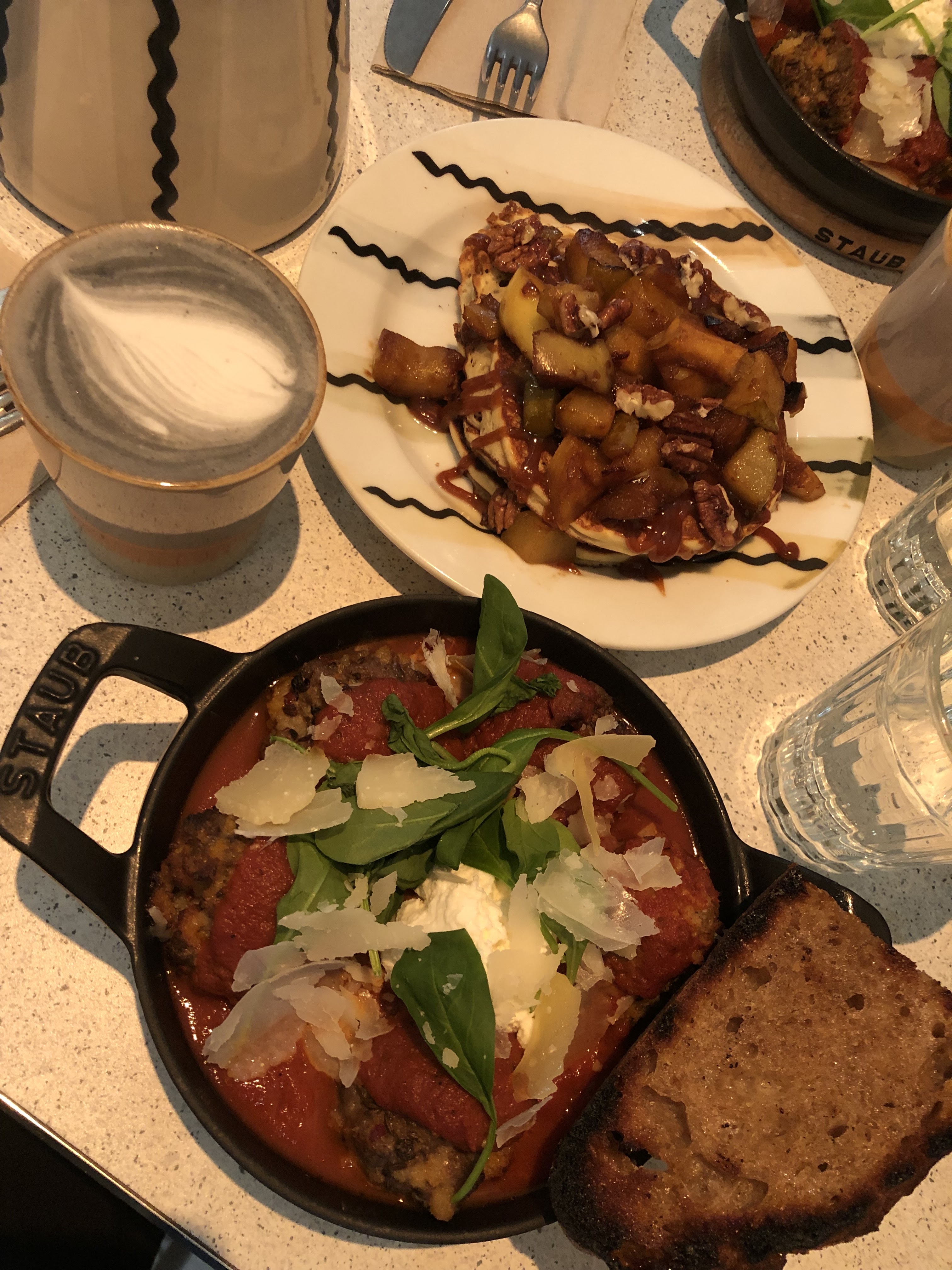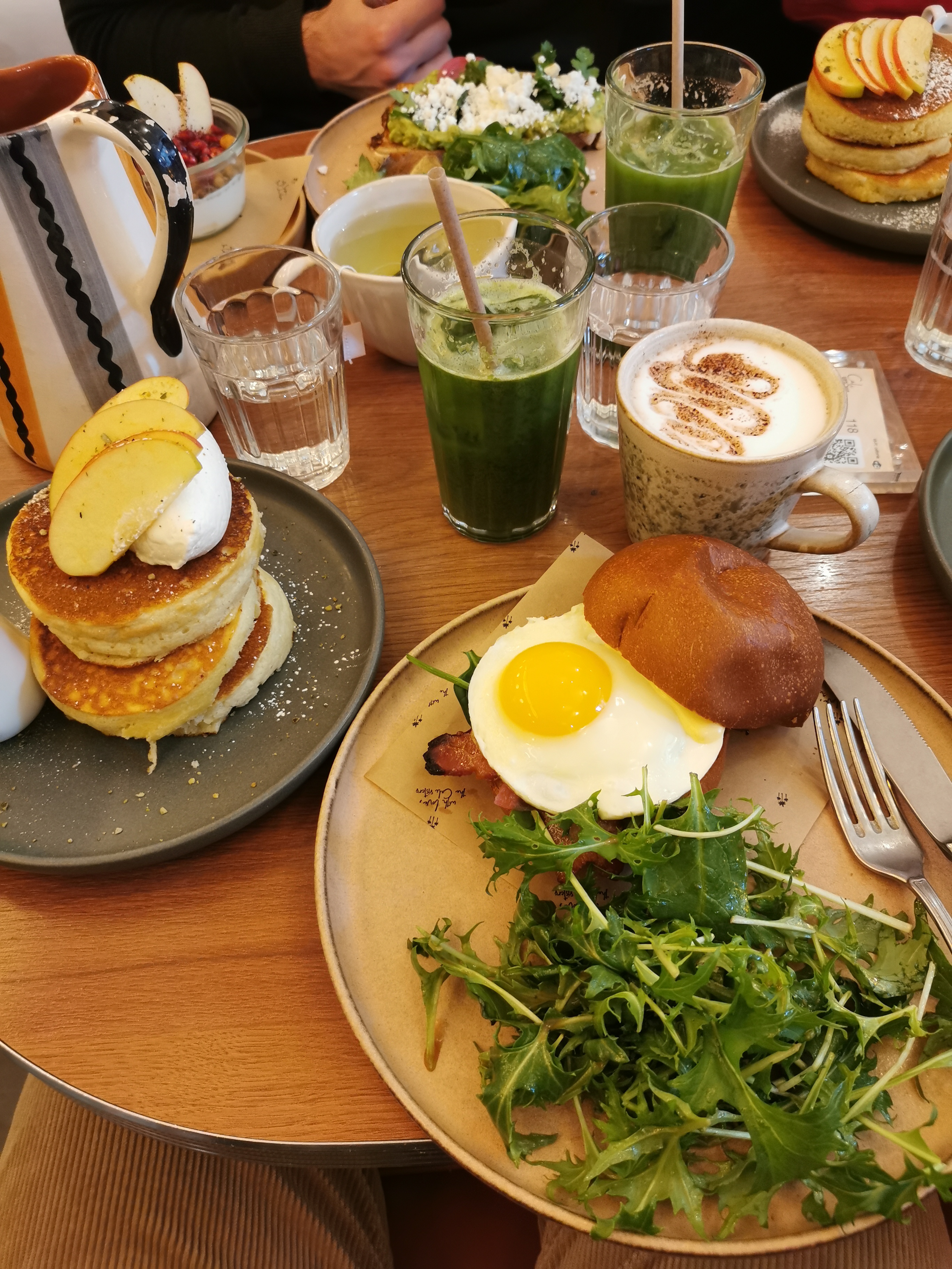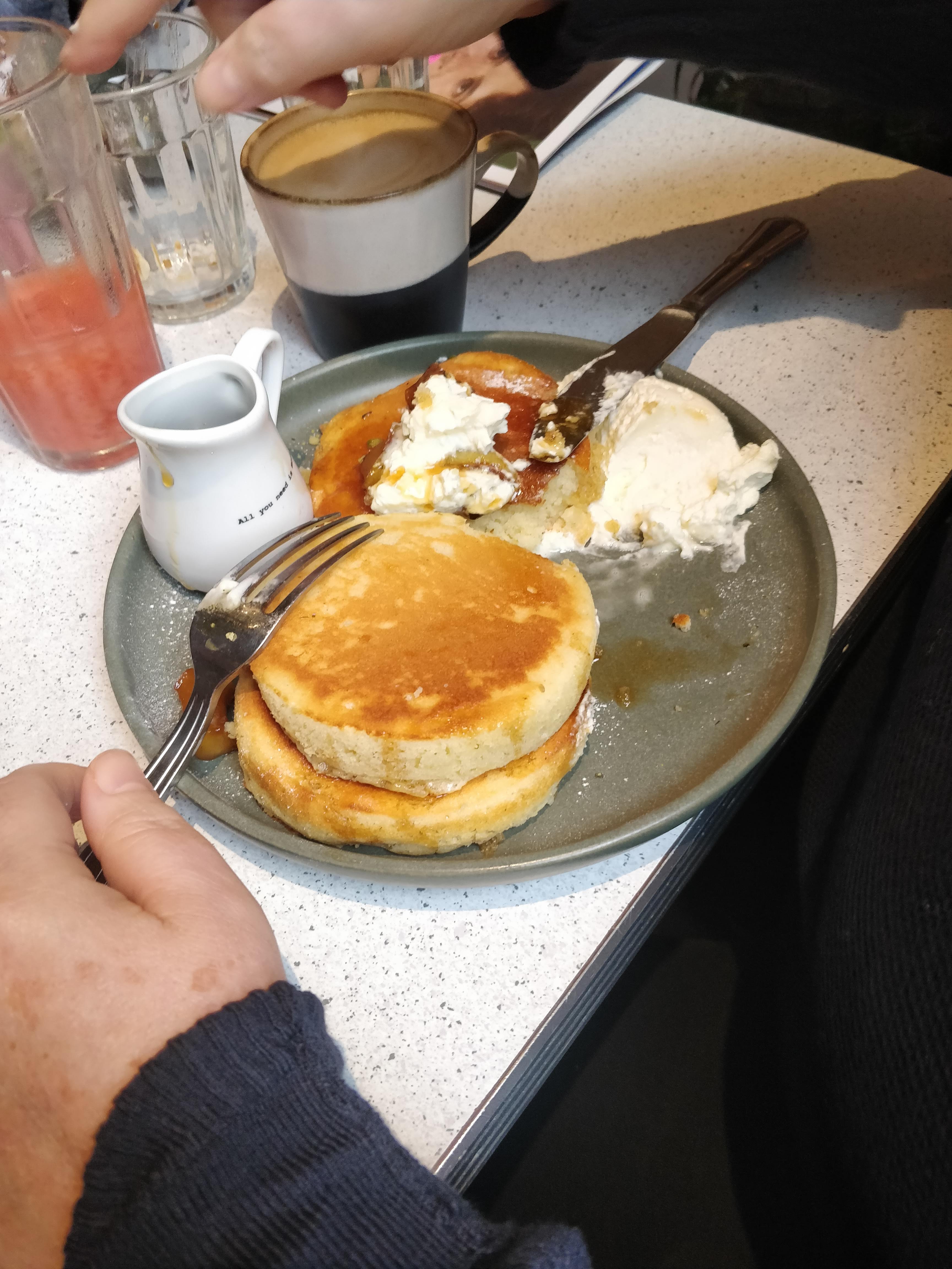 Les pancakes pas bons: trop lourds et sans goût même si l’idée de la sauce tahini est très originale. La portion est petite pour son prix. L’accueil désordonné: c’était dimanche matin mais pour le lieu qui spécialisé en brunch je m’attendais à mieux. Iced latte était bon. Lieu bien décoré.