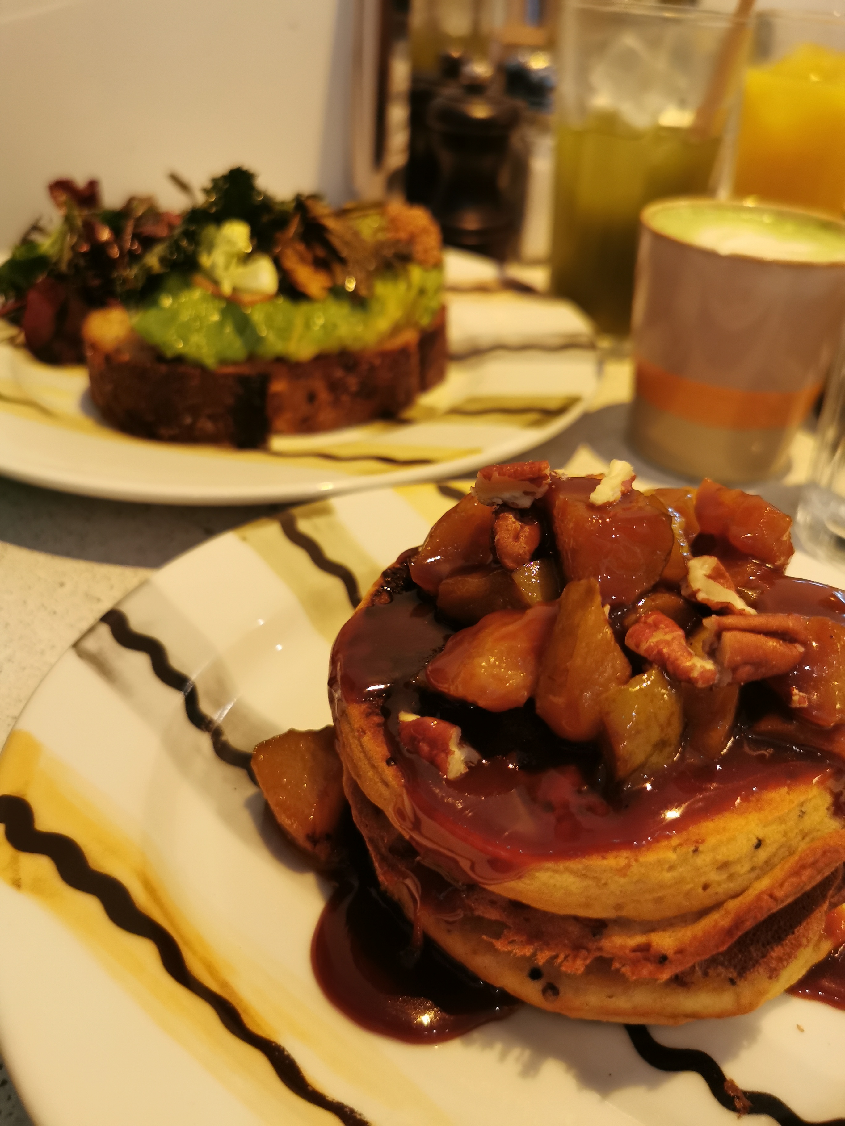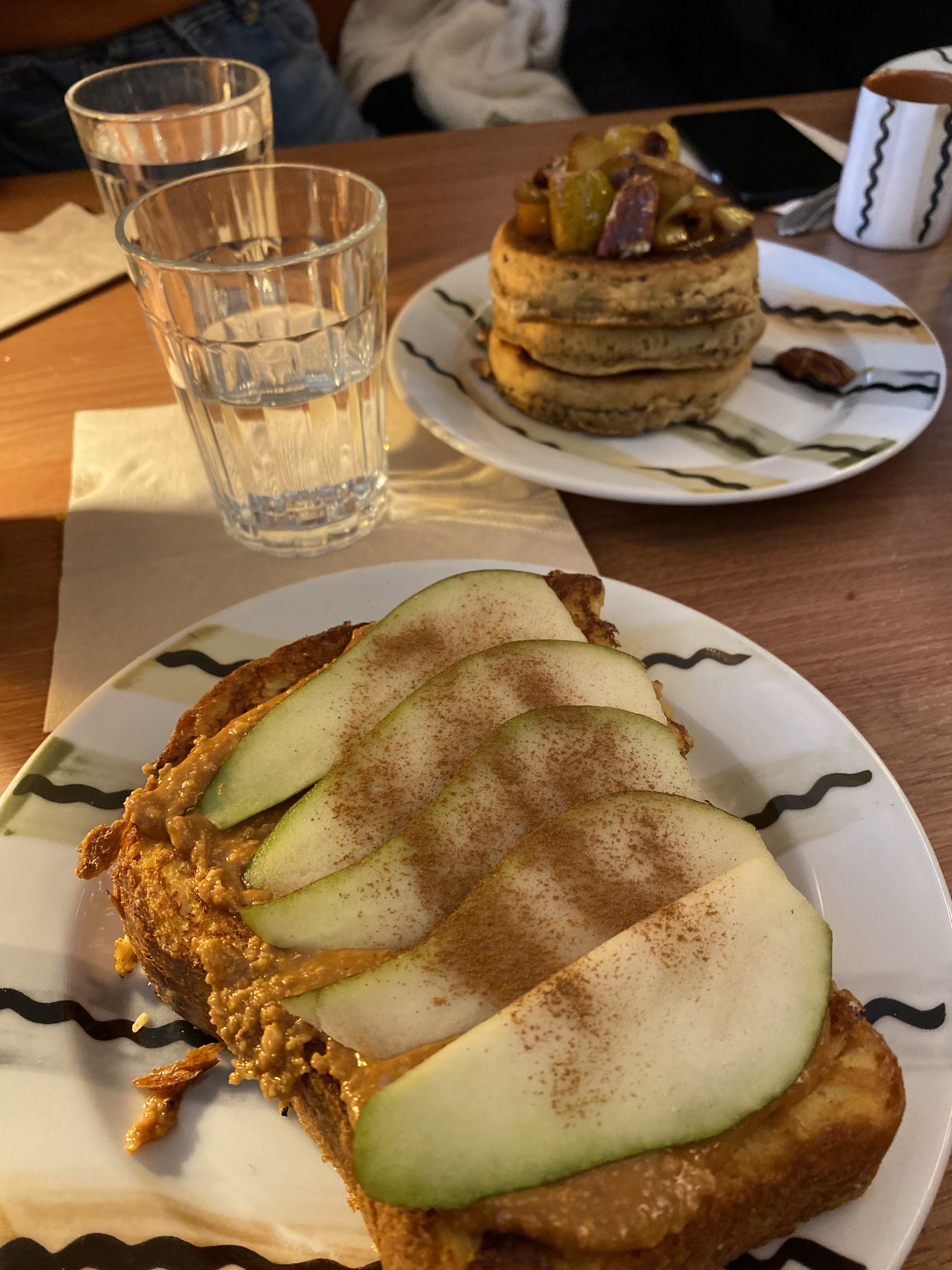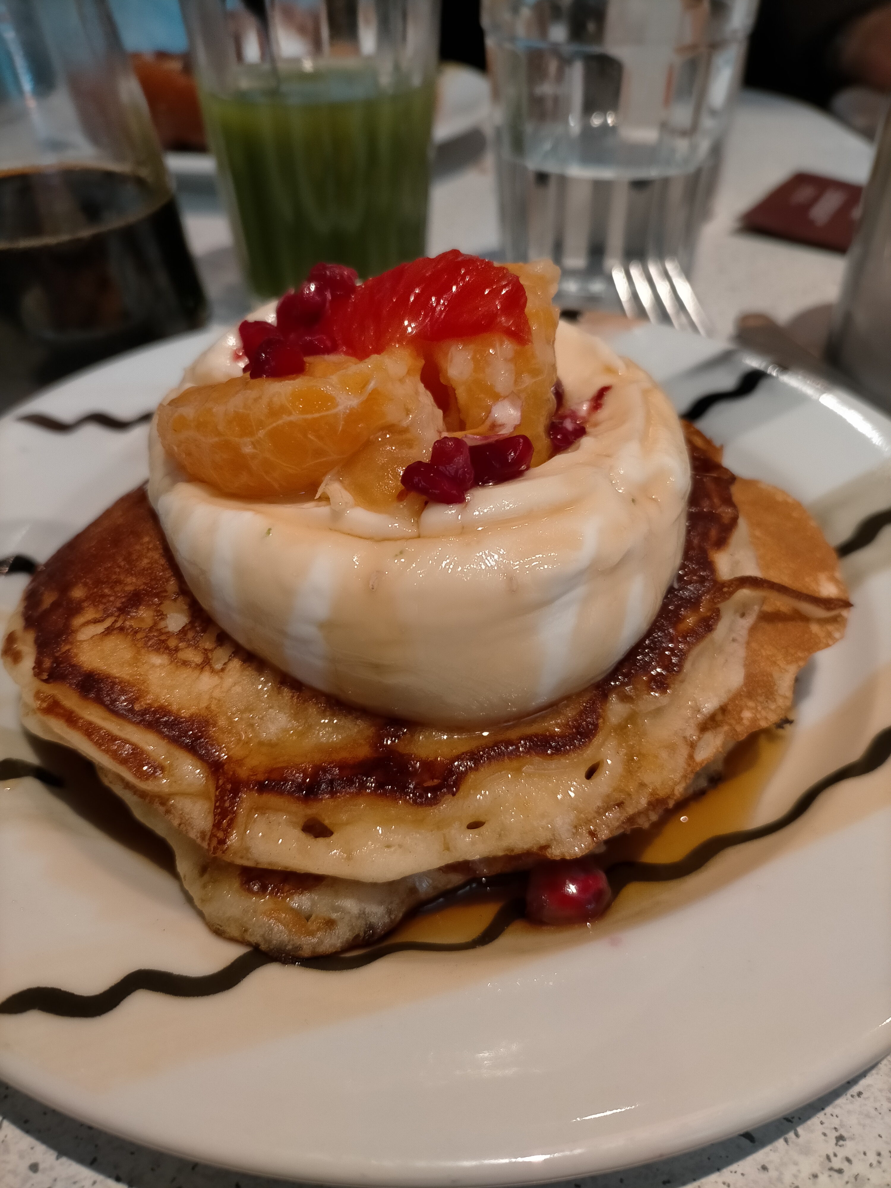 Les pancakes pas bons: trop lourds et sans goût même si l’idée de la sauce tahini est très originale. La portion est petite pour son prix. L’accueil désordonné: c’était dimanche matin mais pour le lieu qui spécialisé en brunch je m’attendais à mieux. Iced latte était bon. Lieu bien décoré.