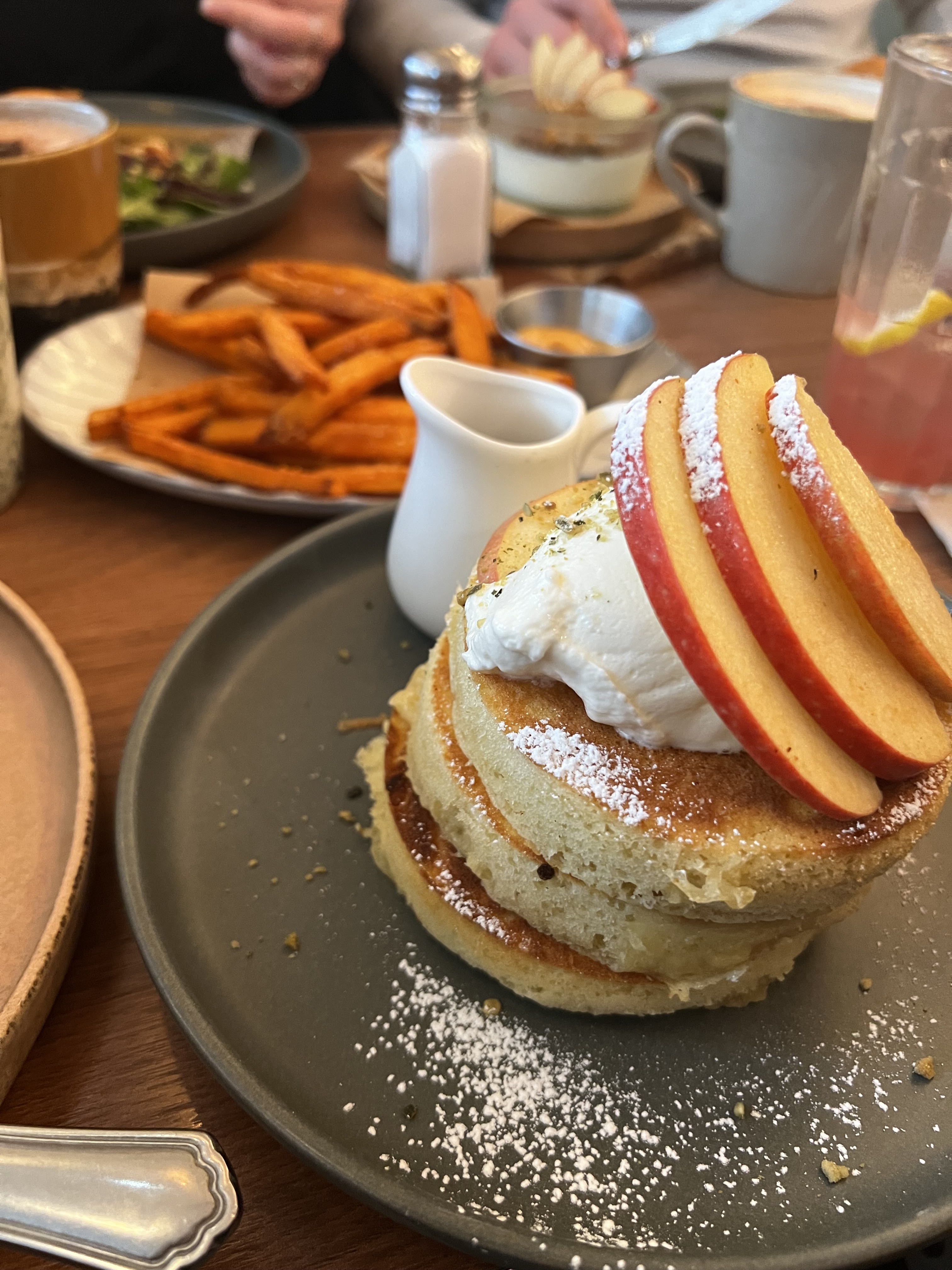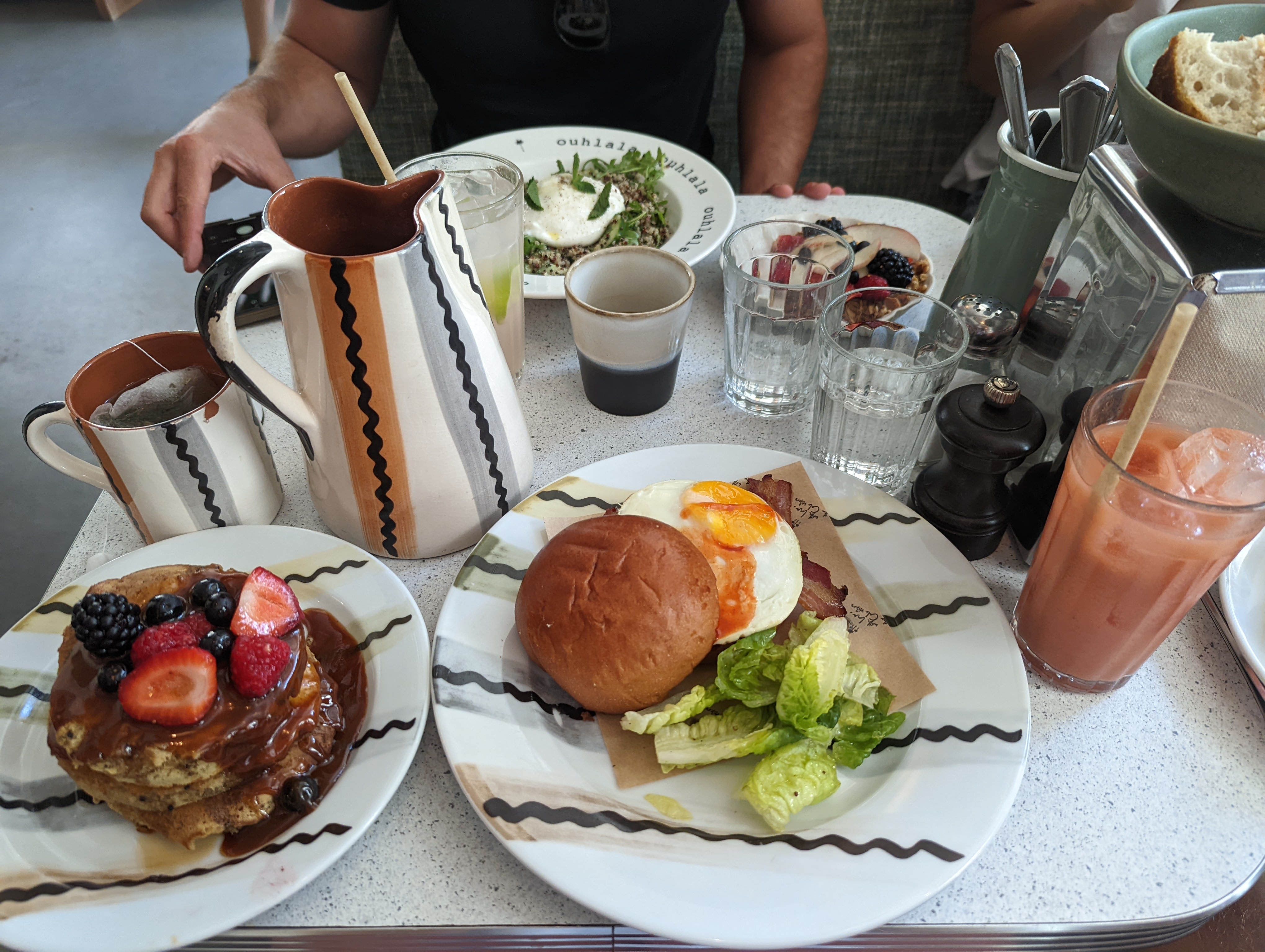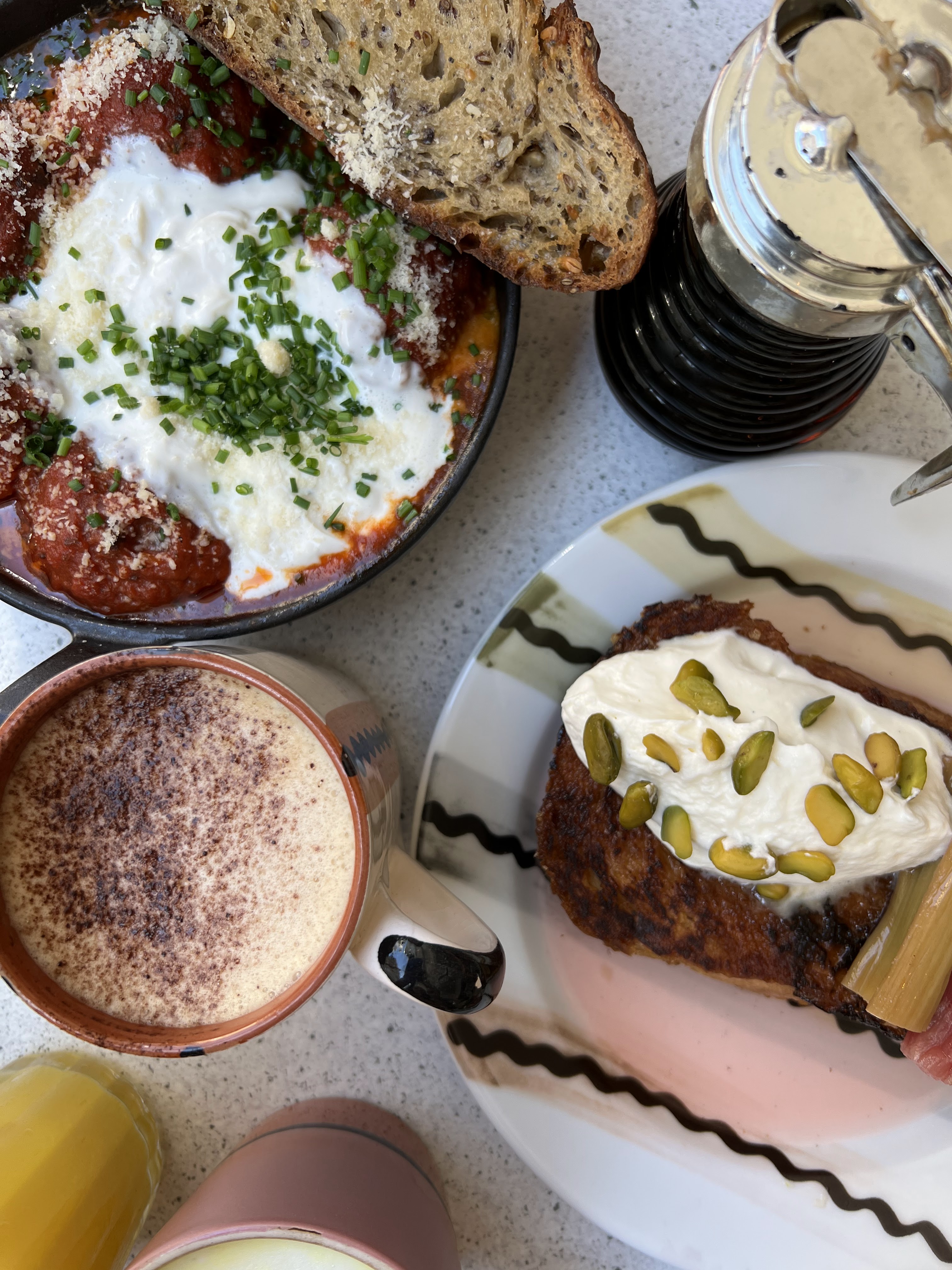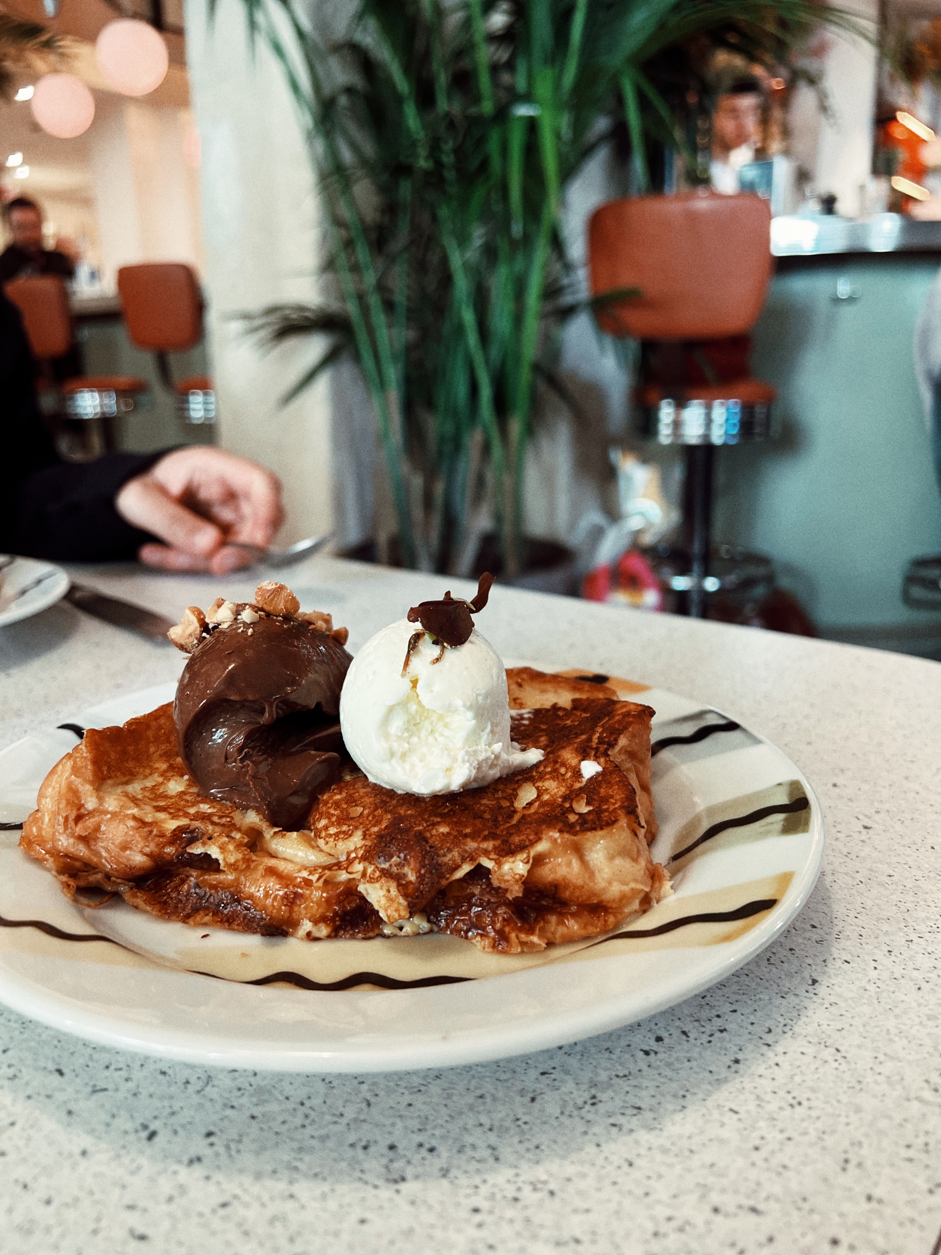 Les pancakes pas bons: trop lourds et sans goût même si l’idée de la sauce tahini est très originale. La portion est petite pour son prix. L’accueil désordonné: c’était dimanche matin mais pour le lieu qui spécialisé en brunch je m’attendais à mieux. Iced latte était bon. Lieu bien décoré.