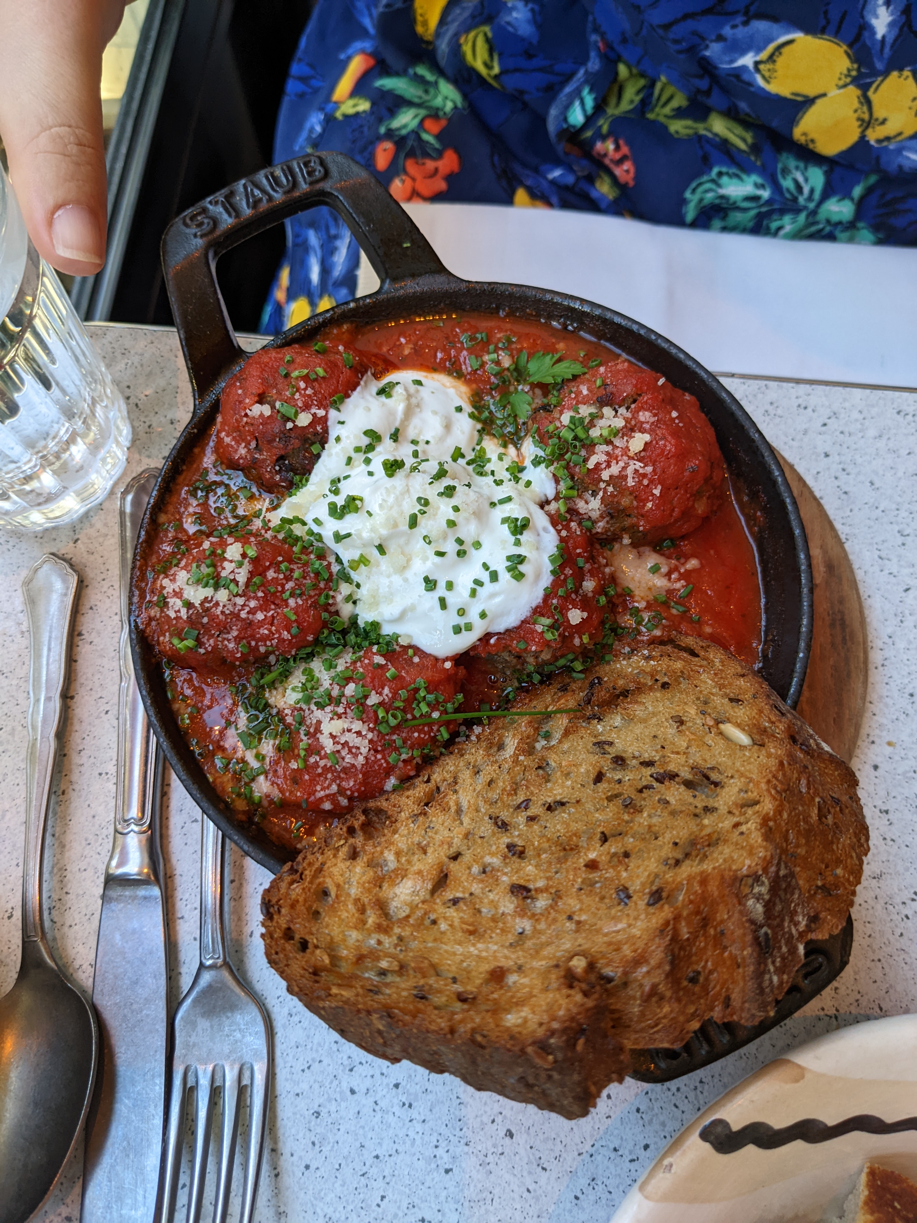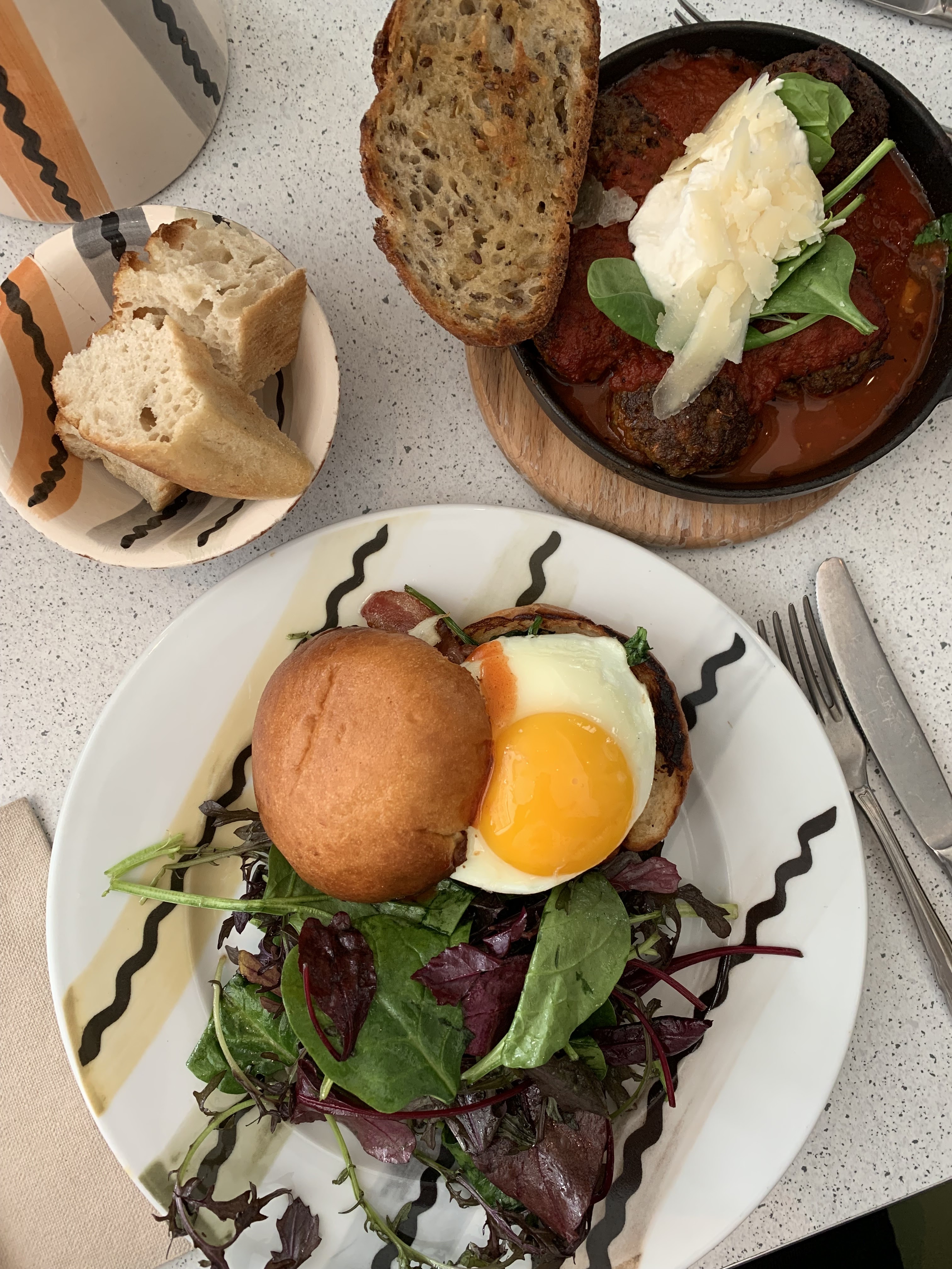 Restaurant aux allures californiennes, service sympathique, malheureusement nous avons eu quelques problèmes de pain. Nous étions un groupe venu dîner et les entrées nécessitaient du pain pour lesquelles nous avons dû en redemander au moins 4 fois, nous apportant des bols remplis de 3 morceaux semblables à des croûtons. Nous avons gentiment été informés qu’il n’y avait pas de pain mais qu’on pouvait payer pour en avoir plus. J’ai personnellement apprécié mon plat (meatballs) bien qu’un peu salé à mon goût ainsi que le brookie. Je retenterai ce restaurant pour les brunchs et les déjeuners en petit groupe car l’établissement semble avoir pignon sur rue et est souvent plein en journée.