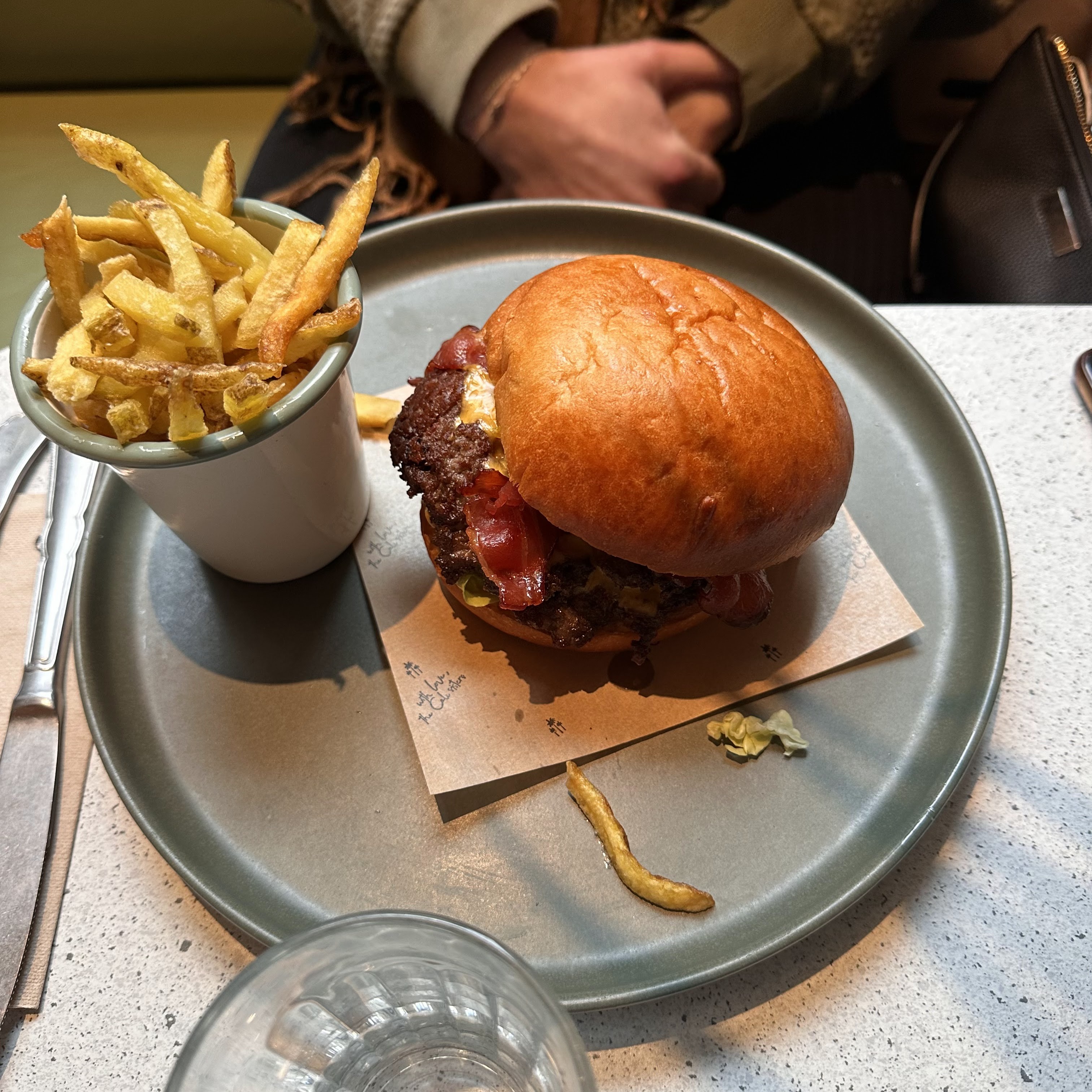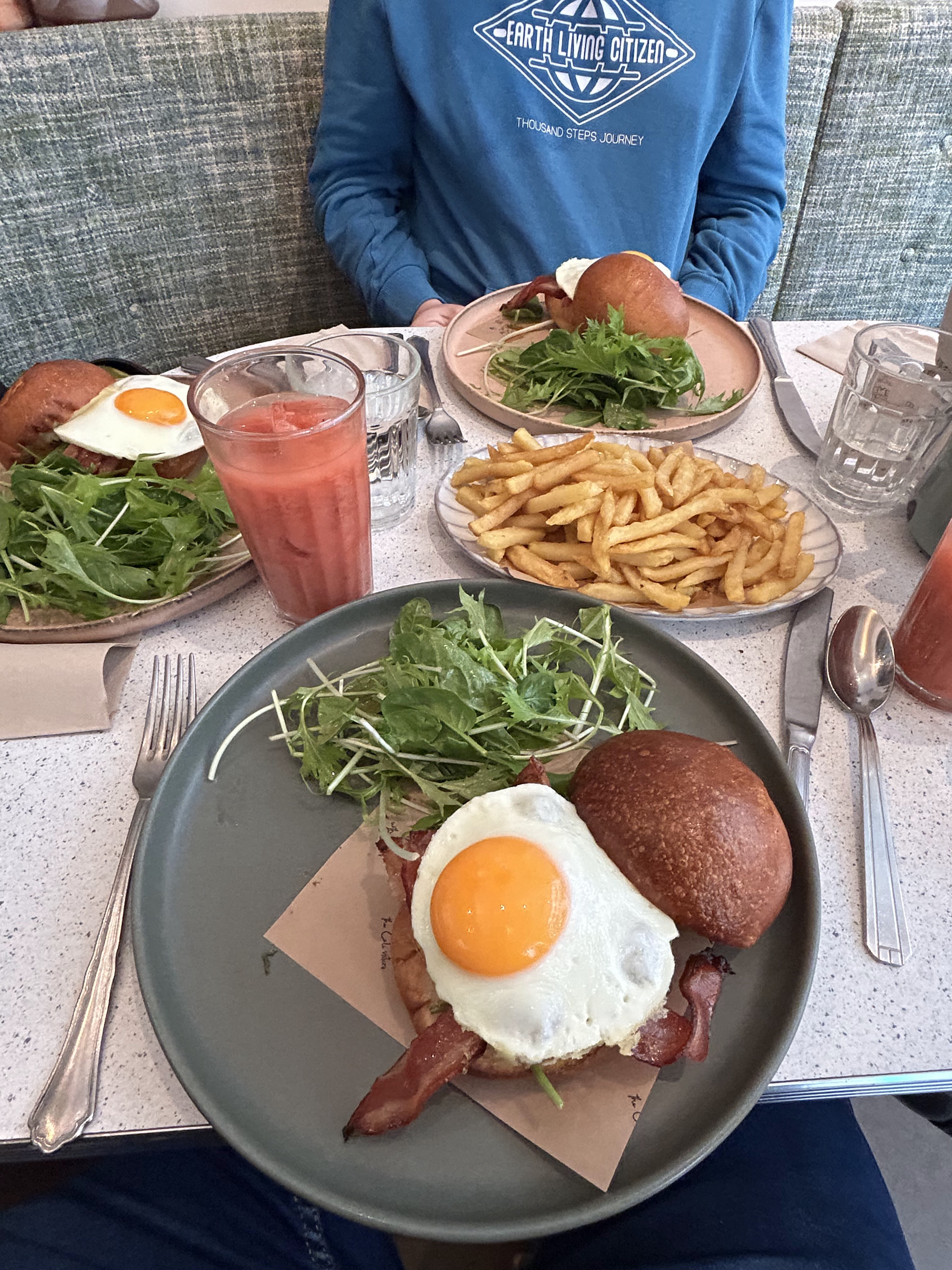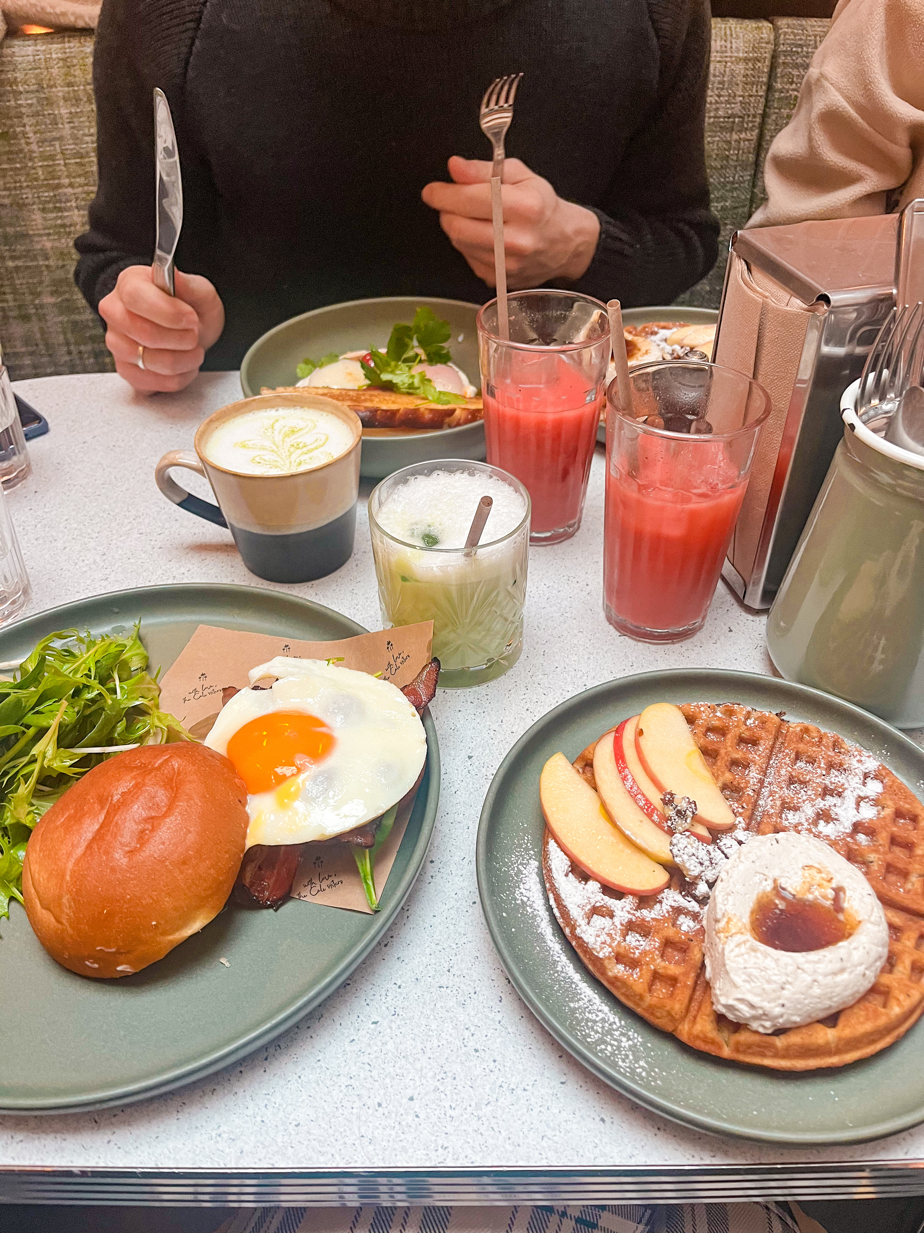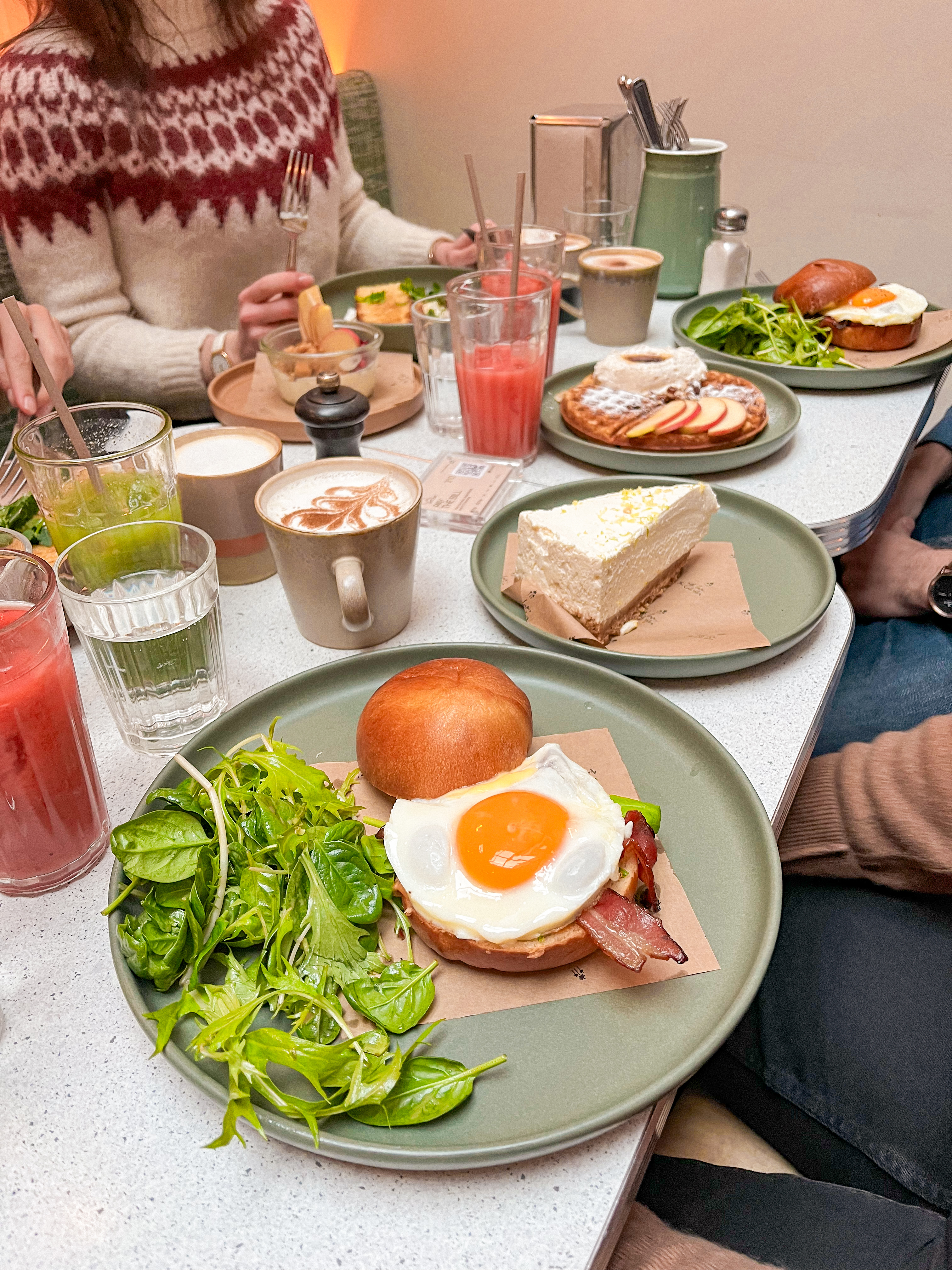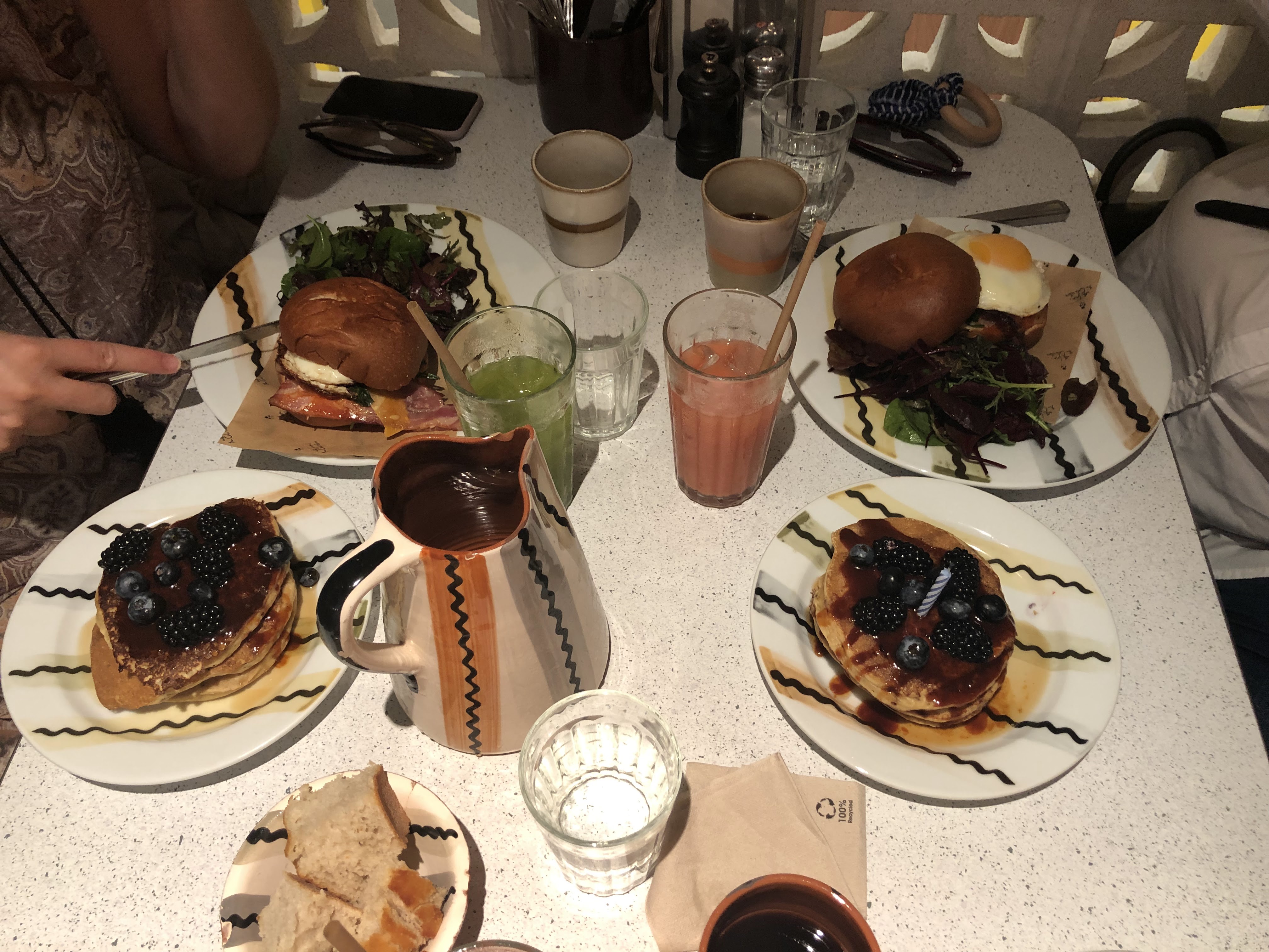 L’accueil et l’endroit étaient sympas, un peu déçus pour la nourriture et les boissons. En effet le jus d’orange était dilué dans les glaçons, le café filtre à volonté n’était pas très bon (un peu fort à notre goût), les pancakes étaient un peu secs, il n’y avait presque pas de bacon dans le Egg Sandwich… 29€/brunch. Ça va mais bon, on peut mieux faire je trouve. Aussi, il a fallu rappeler certaines boissons qui avaient été oubliées… et la table initialement proposée n’était pas confortable alors que nous avons prévenu qu’il t’aurait une poussette. Ce sont les petits détails qui font la différence entre bien et excellent !