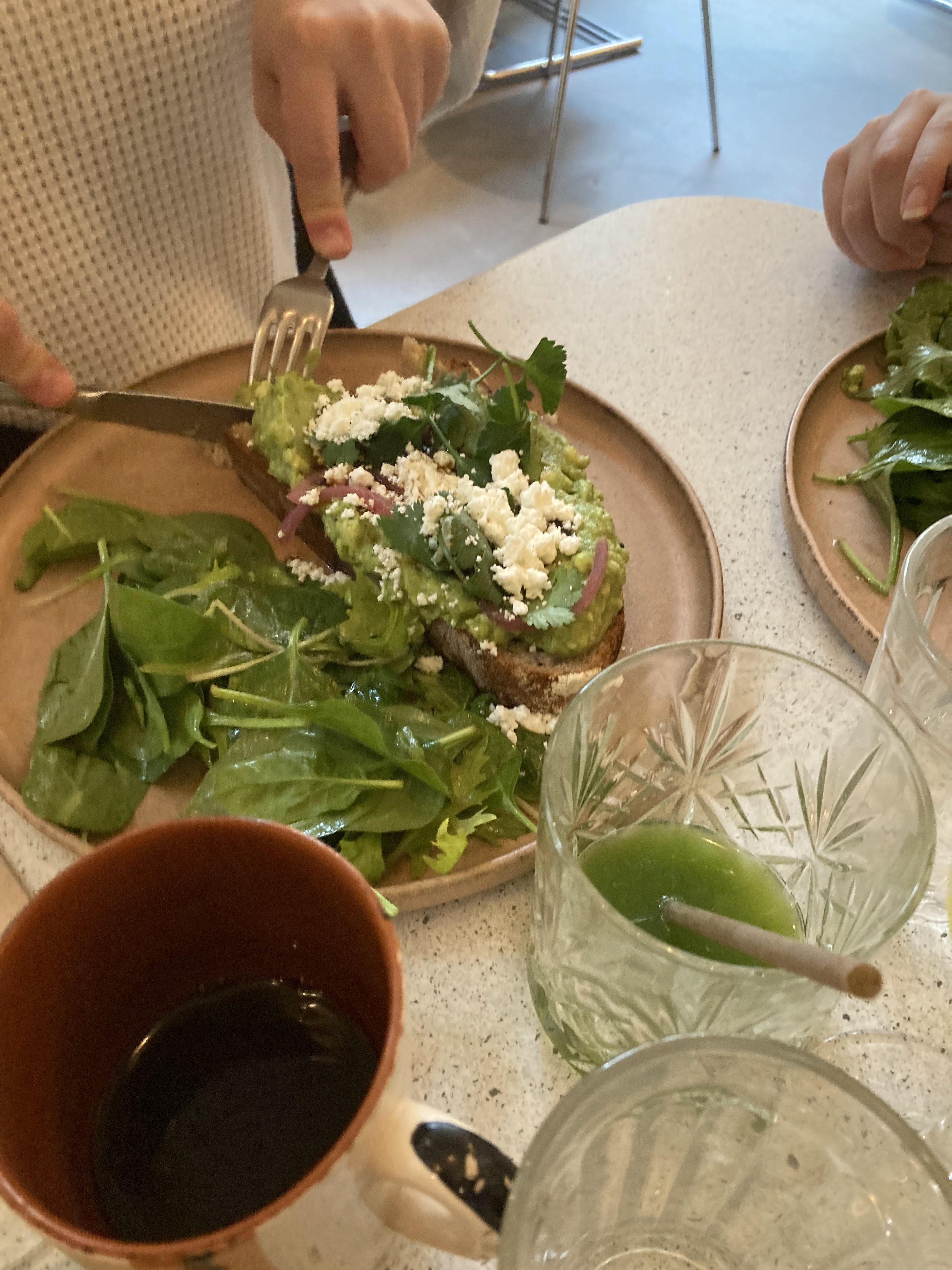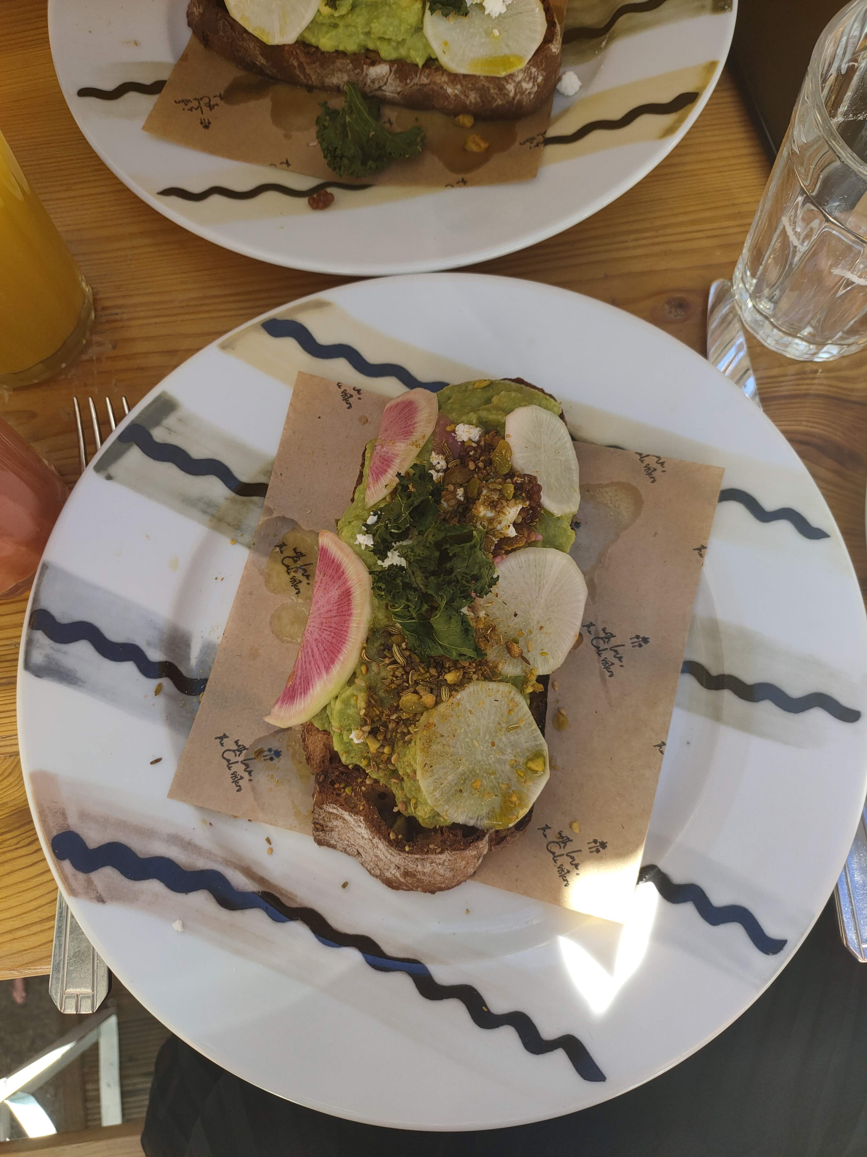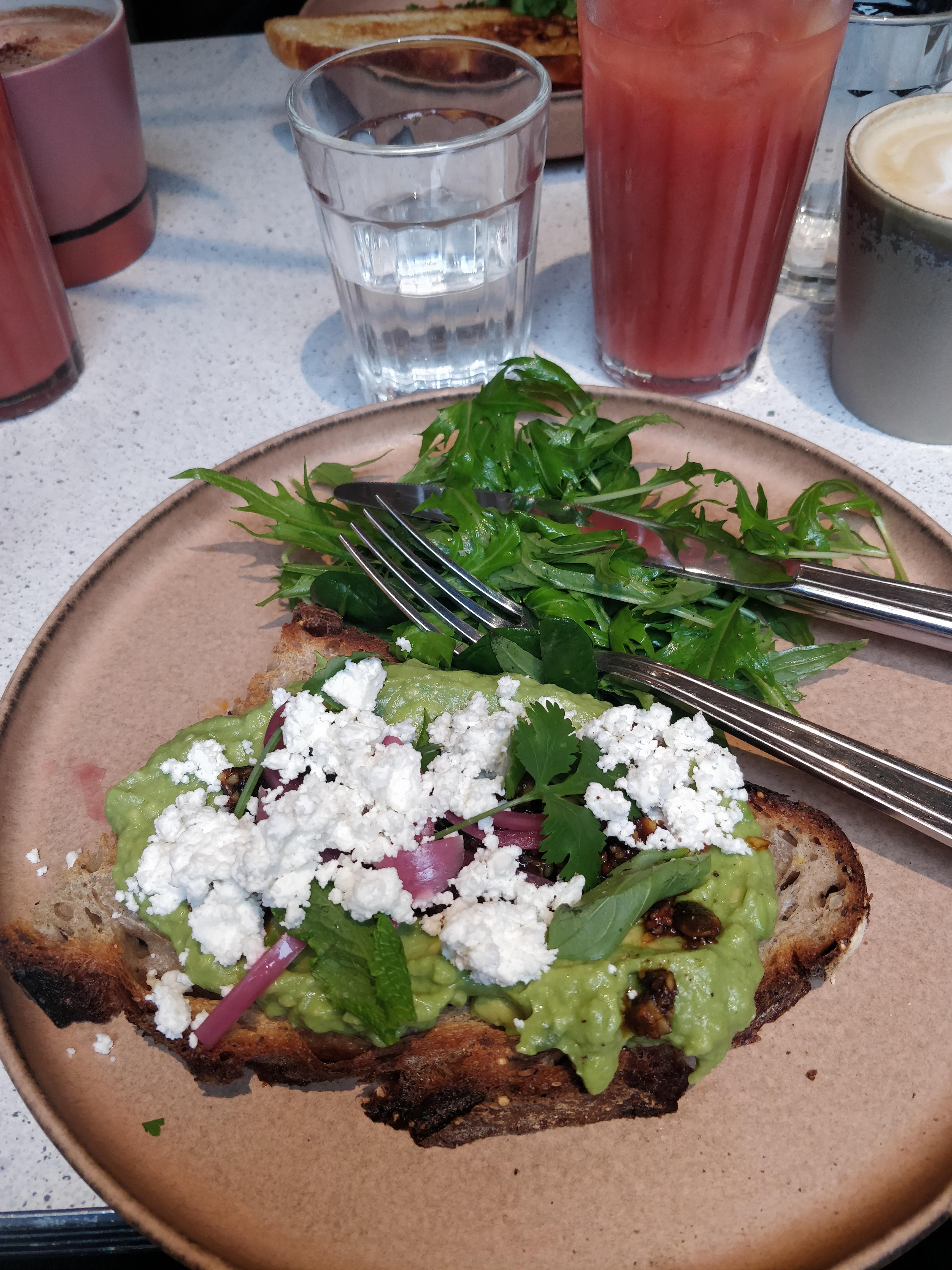 Vraiment déçue. On nous installés sans nous prévenir qu'il n'y a pas de choix à la carte le weekend, c'est donc un peu forcés que l'on a choisi la formule brunch à 29€ pour 2 assiettes et 2 boissons. Attention le cappuccino est - tenez-vous bien - à 2€ de supplément, ça fait cher la goutte de lait. Si comme moi vous faites le choix de l'avocado toast parmi la maigre carte, préparez-vous à vous contenter d'une portion qui ne remplit à peine que la moitié de l'assiette (photo à l'appui). Le goût est là mais pour le prix, on ressort avec la très amère et désagréable impression de se faire avoir.
