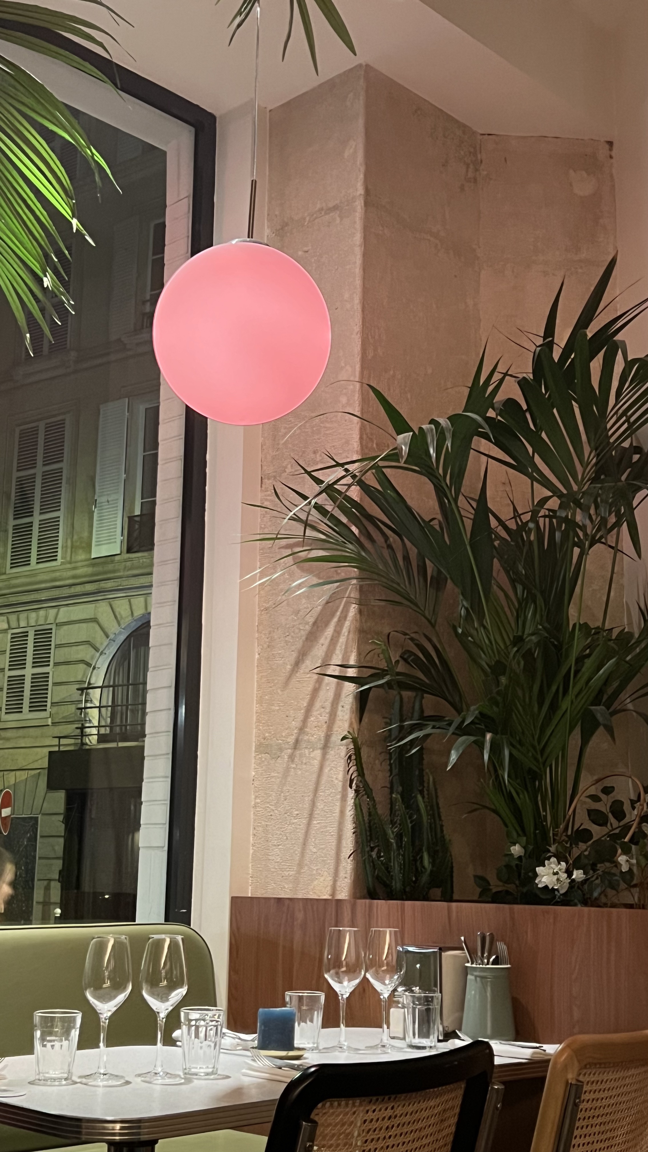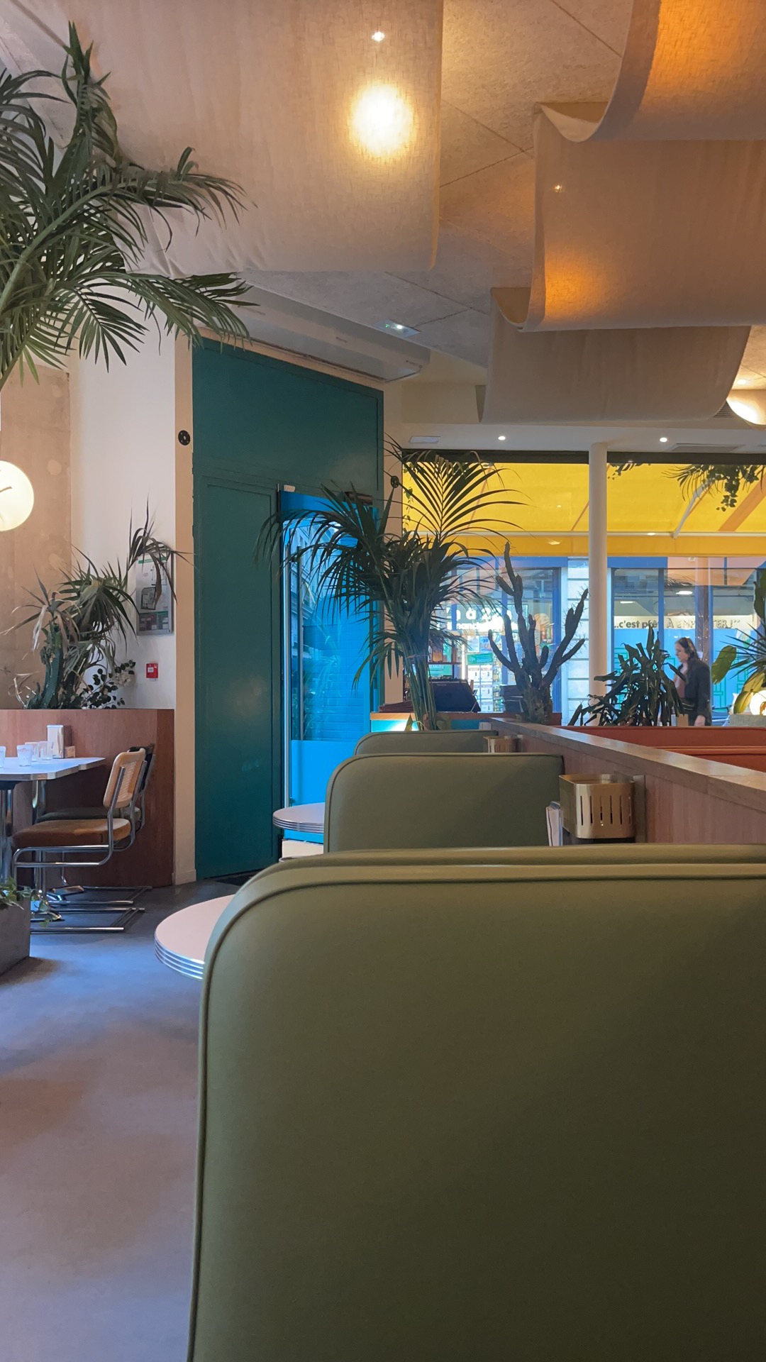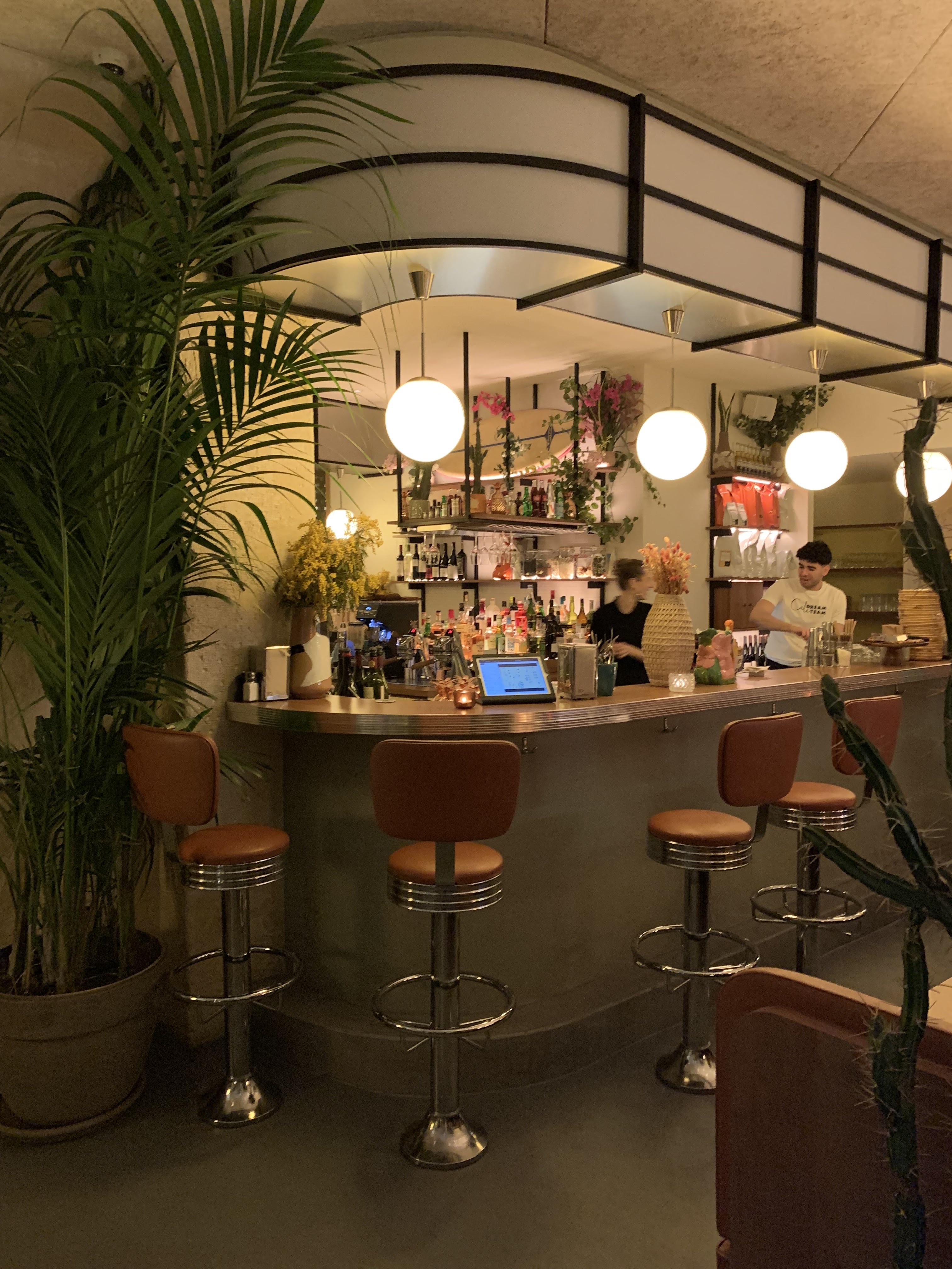 Tres joli lieu branché du 10ème. Réservation un vendredi soir. Cadre au top. Ambiance tamisée. Musique, plantes, décoration et banquettes qui nous projettent dans un décor de film. On adore. La carte est épurée, mais c'est pas plus mal, car ça présage de bons produits et une cuisine appliquée. Smash burger, meat balls, haloumi grillé et conchiglioni Verde composaient notre repas. C'était bon. Pas d'excès. Pas d'excentricité. Mais c'etait bon. La carte des cocktails est également très bien fournie. Pour un agréable moment de dépaysement, foncez!