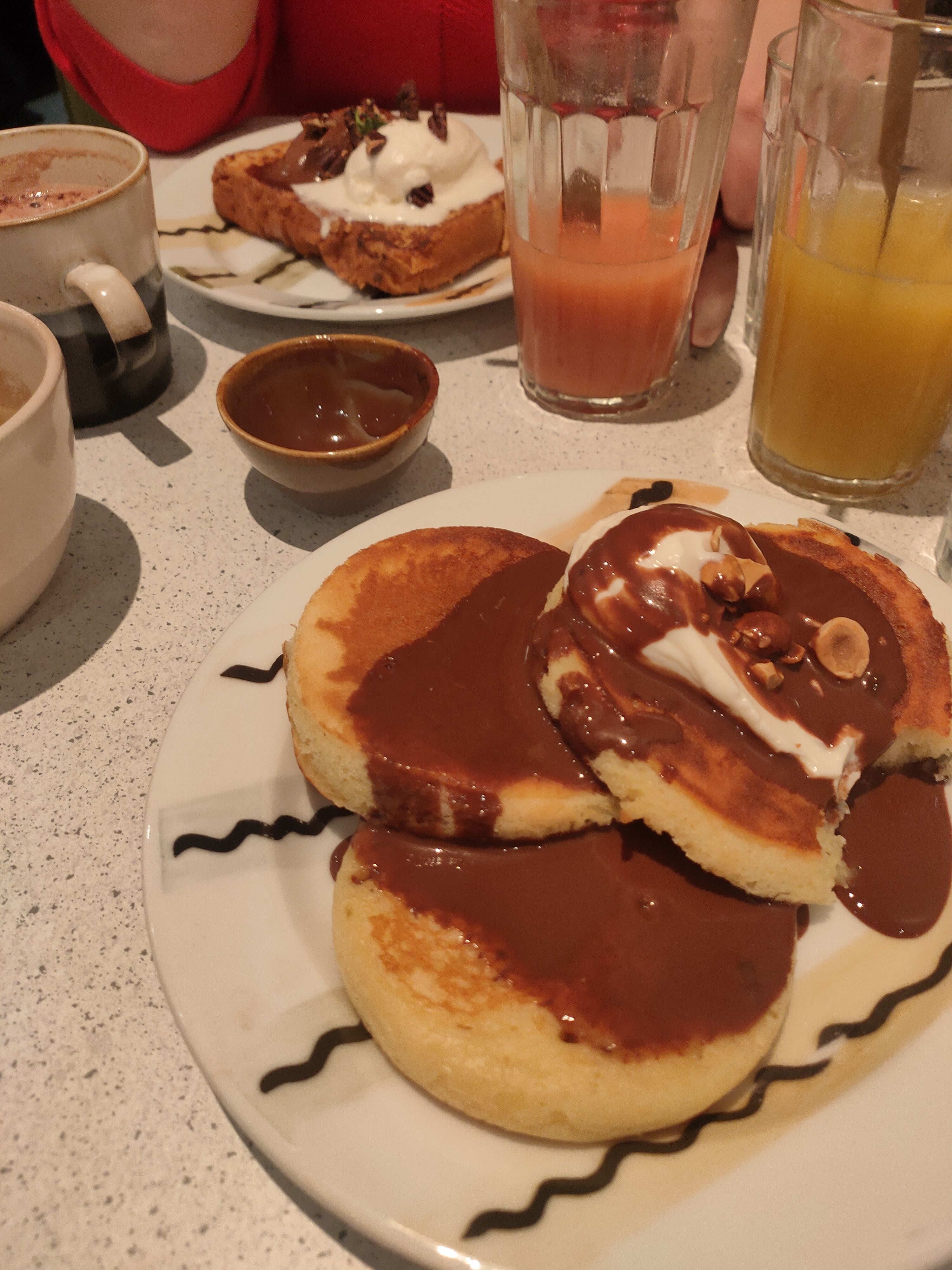 Ayant testé plusieurs brunch avec formule celui ci est un peu cher pour la qualité des produits et la quantité 👎🏻 Avocado toast petit et fade Pancake fluffy et pain perdu chocolat gourmand 🍫🥞