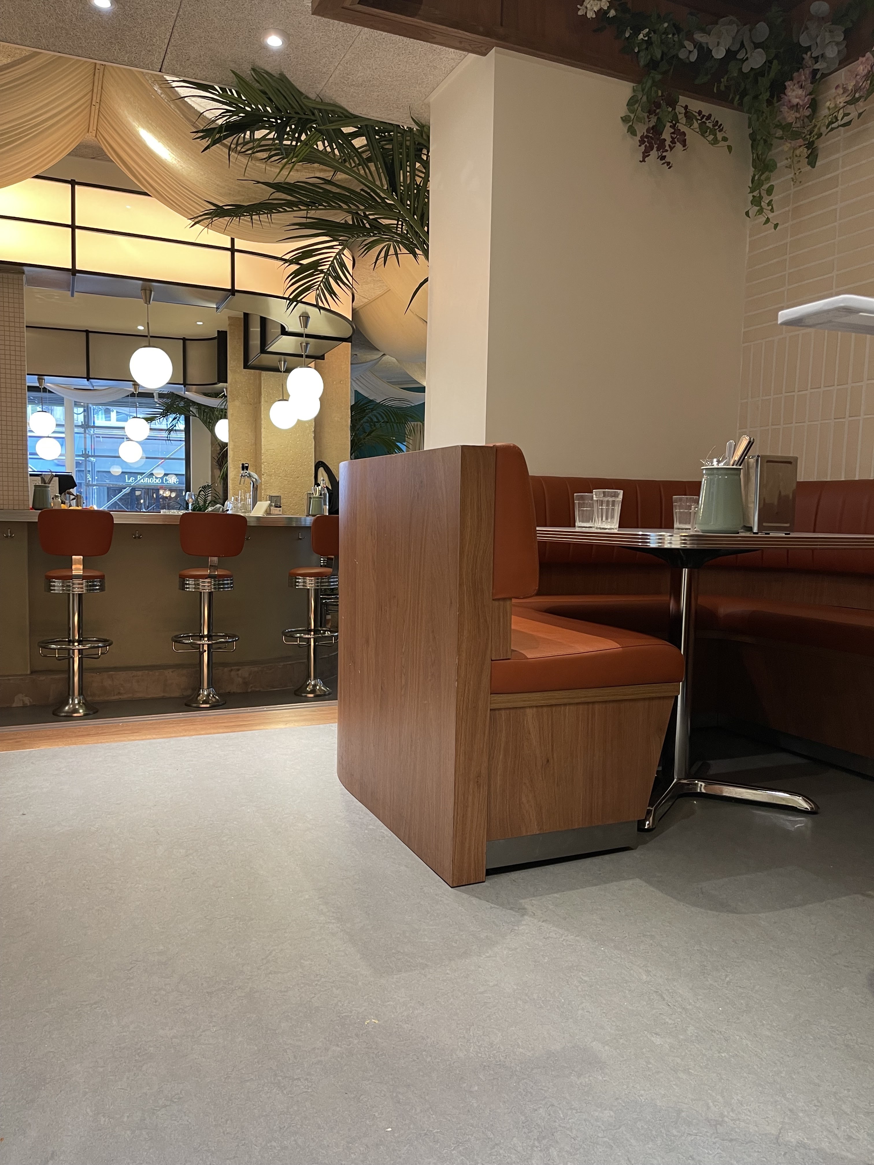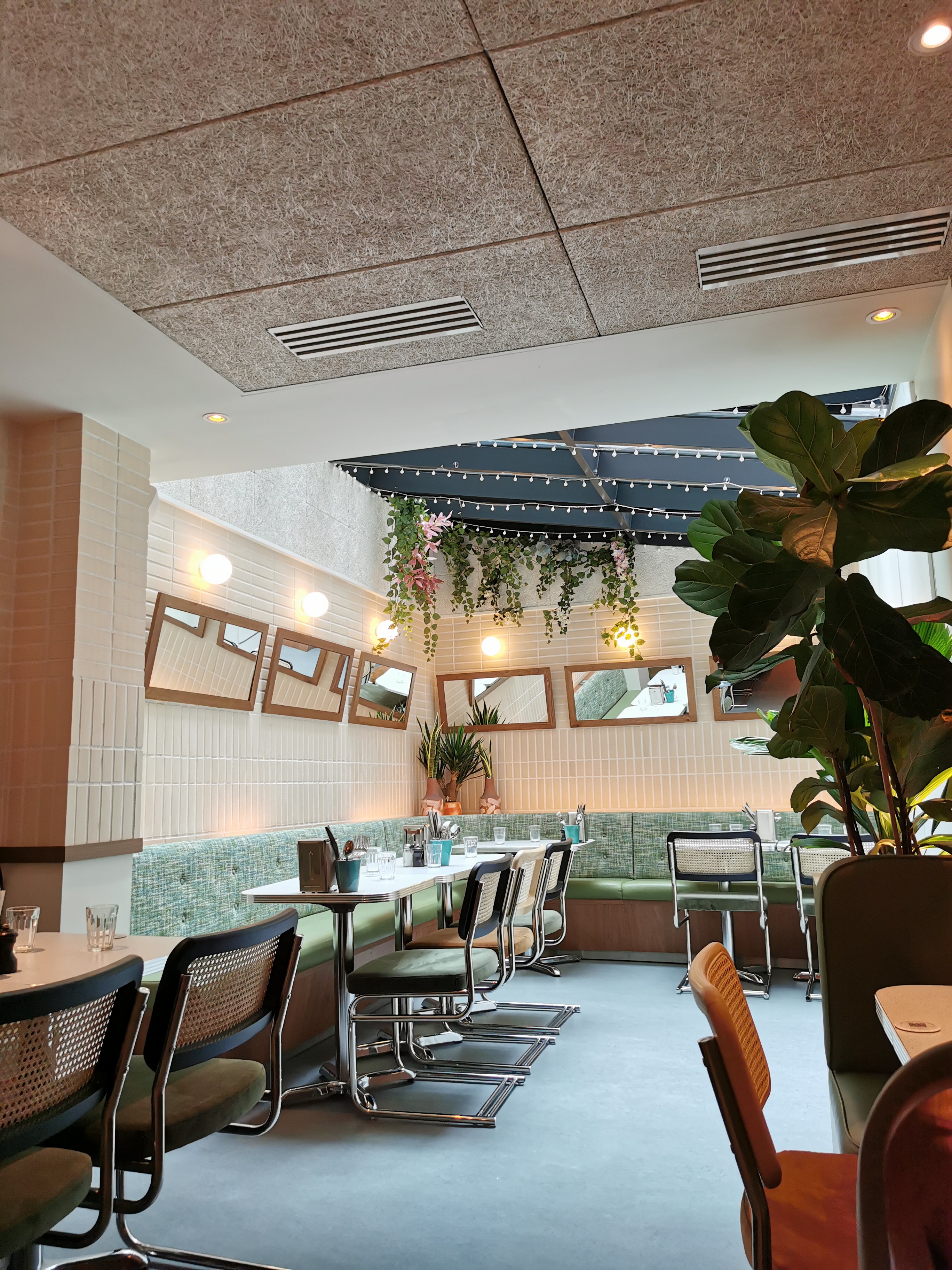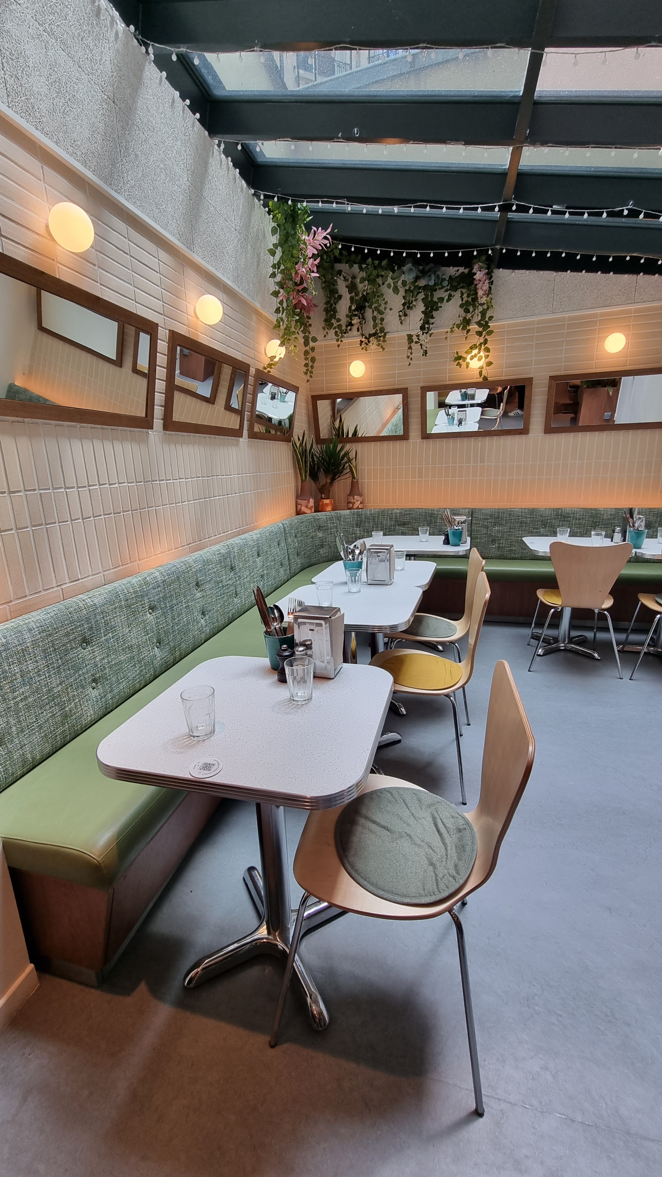 Toujours aussi sympa, j’ai été pour un brunch, nous nous sommes régalés. Je recommande le pain perdu amande et le toast avocat hummm. Même la musique est cool, très bonne ambiance. En revanche, on était le long de la baie vitrée et il faisait trop chaud, emplacement à éviter par beau temps. ————— Que cet endroit est joli ! la déco est vraiment au top, un chouette mix années 60, bois, plantes...c'est apaisant. les plats sont bons, nous avons testé meatballs et burger. L' équipe est au top, ils sont tous très sympas et accueillants. Je recommande.