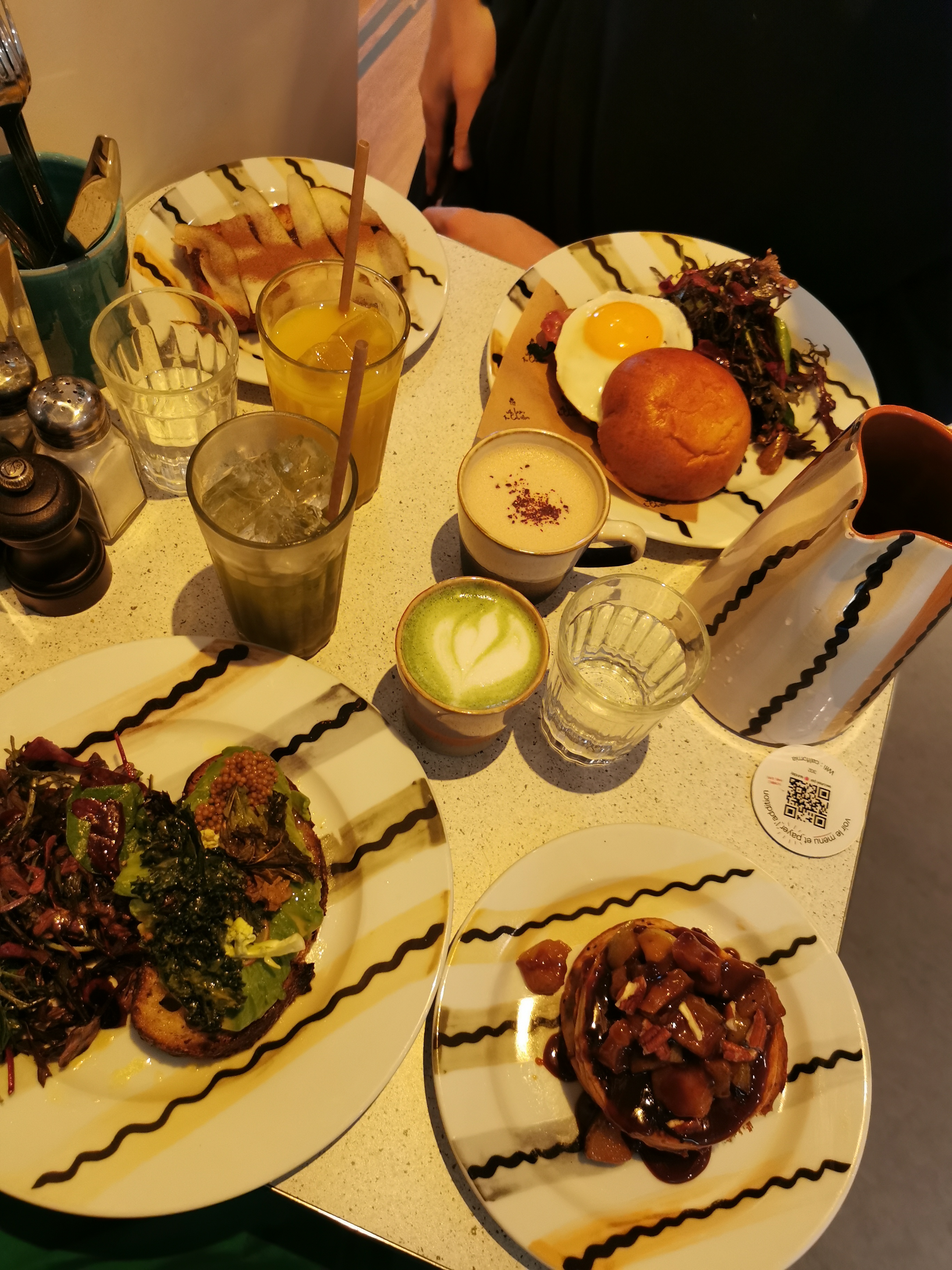 Brunch excellent et copieux, service au top ! Nous avons pris la formule brunch à 29€ avec un plat salé + un plat sucré + une boisson chaude + une boisson fraîche. Petit supplément de 2€ pour le golden latte, mais le total reste raisonnable et je me suis régalée. Le cadre aussi est très agréable, les tables sont assez espacées pour manger dans une ambiance intimiste, et petit plus pour la playlist haha ❤️🔥