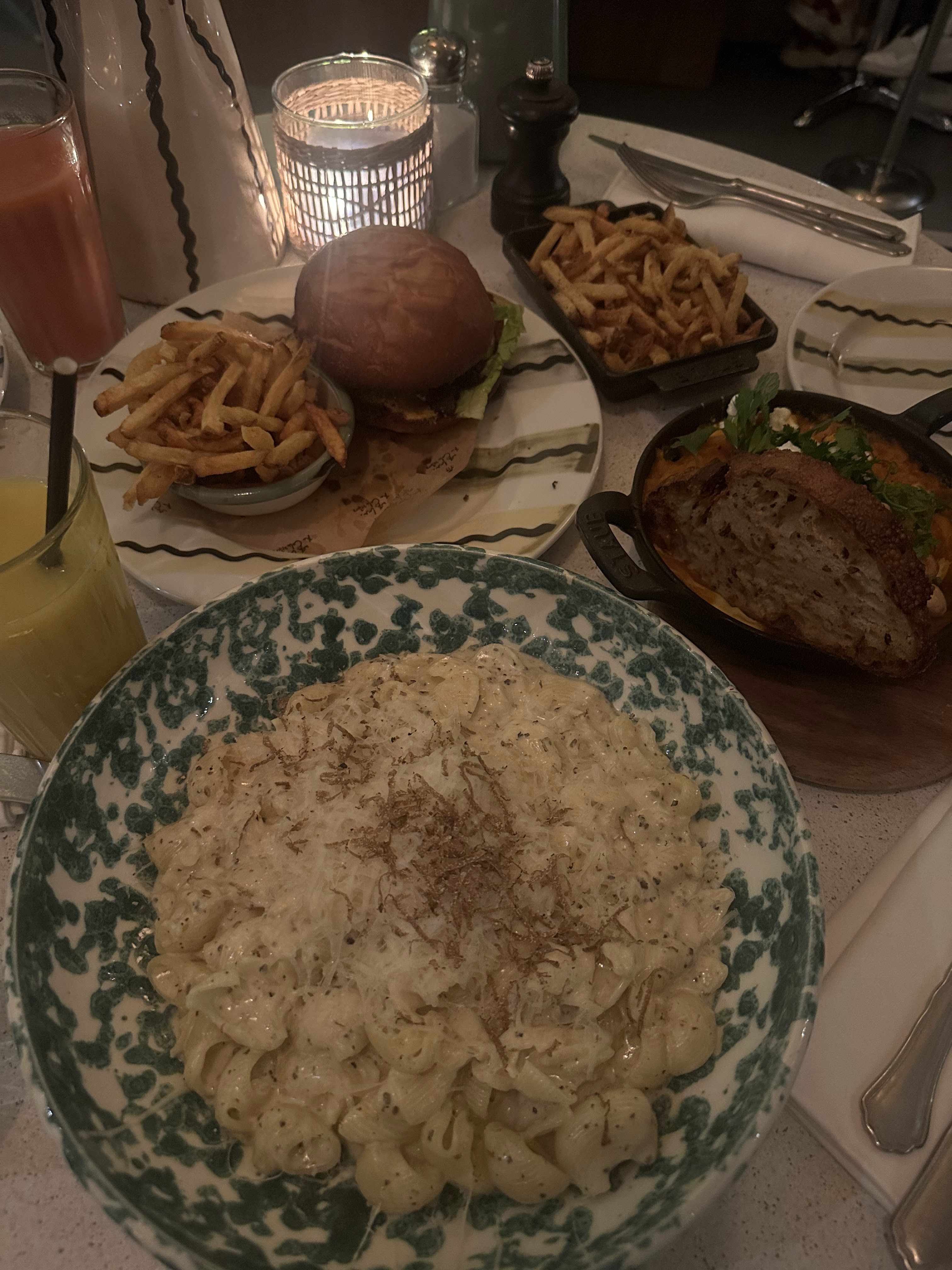 Jolie déco, bon cocktails (même si on sentait peu l’alcool) et bonnes entrées. Par contre service long et grande déception sur les plats surtout les pâtes à la truffe. 22€ pour des pâtes sans goût, sans assaisonnement et la truffe inexistante en bouche (même s’il y avait des lamelles de truffes dans l’assiette : mauvaise qualité de truffes cf photo). Les gnocchis n’étaient pas bon du tout, ils étaient pâteux. À voir si le brunch est bon ?