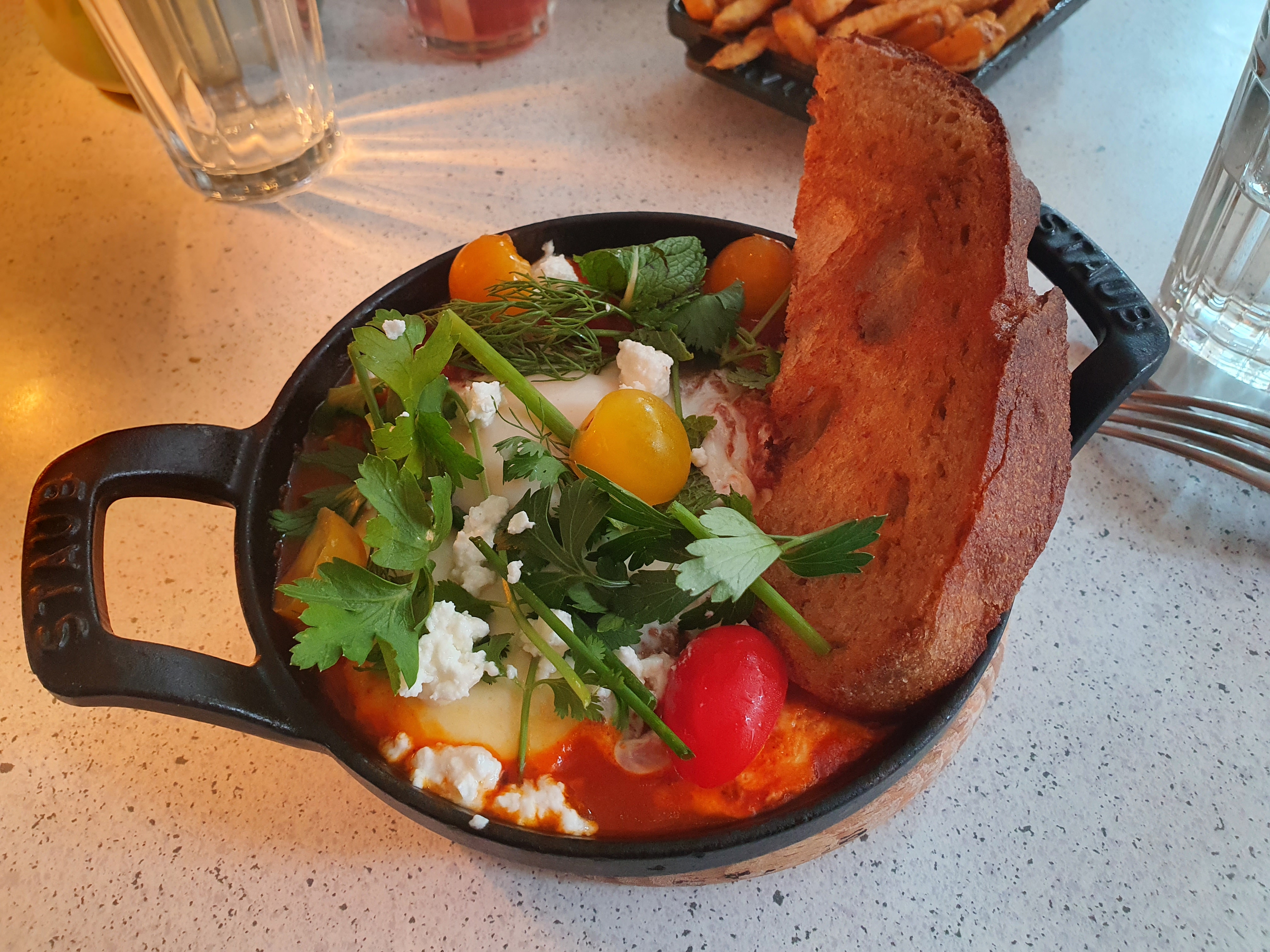 j’ai pris une shakshouka trop bonne 😍 j’adore , c’est pas copieux mais c’est délicieux yamiii , une ambiance à l’américaine 🙌🏼🙌🏼🙌🏼