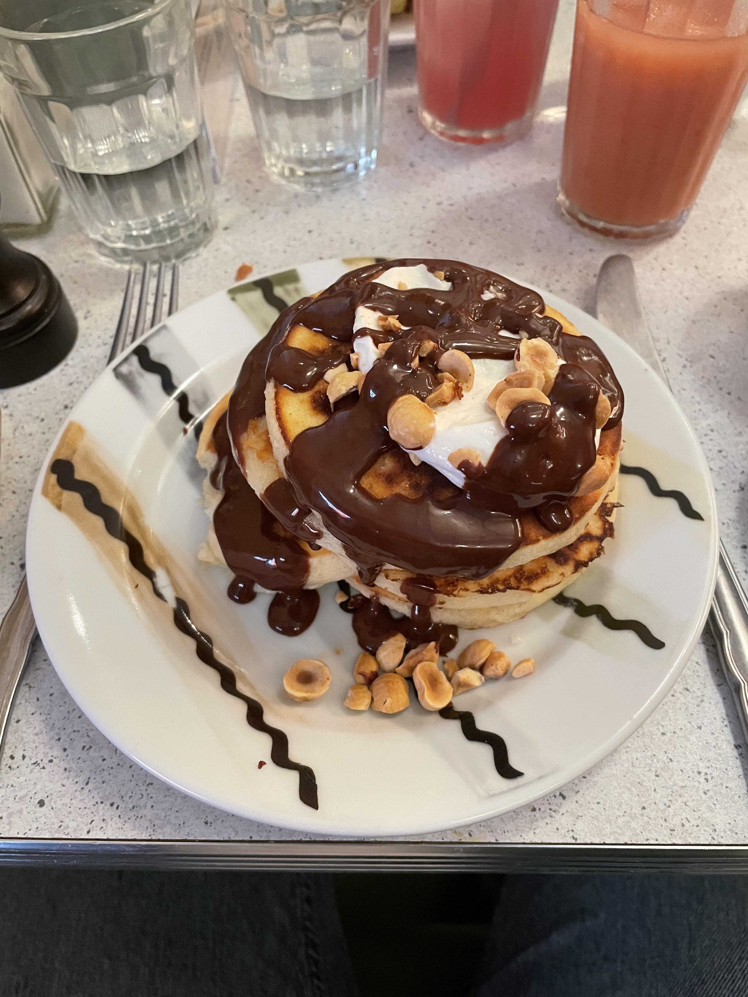 La qualité des plats est très décevante. Je suis très étonnée des notes. Des gaufres et des pancakes très secs qui s’effritent. Boissons froides plutôt correctes. Je ne recommande pas et ne reviendrai pas